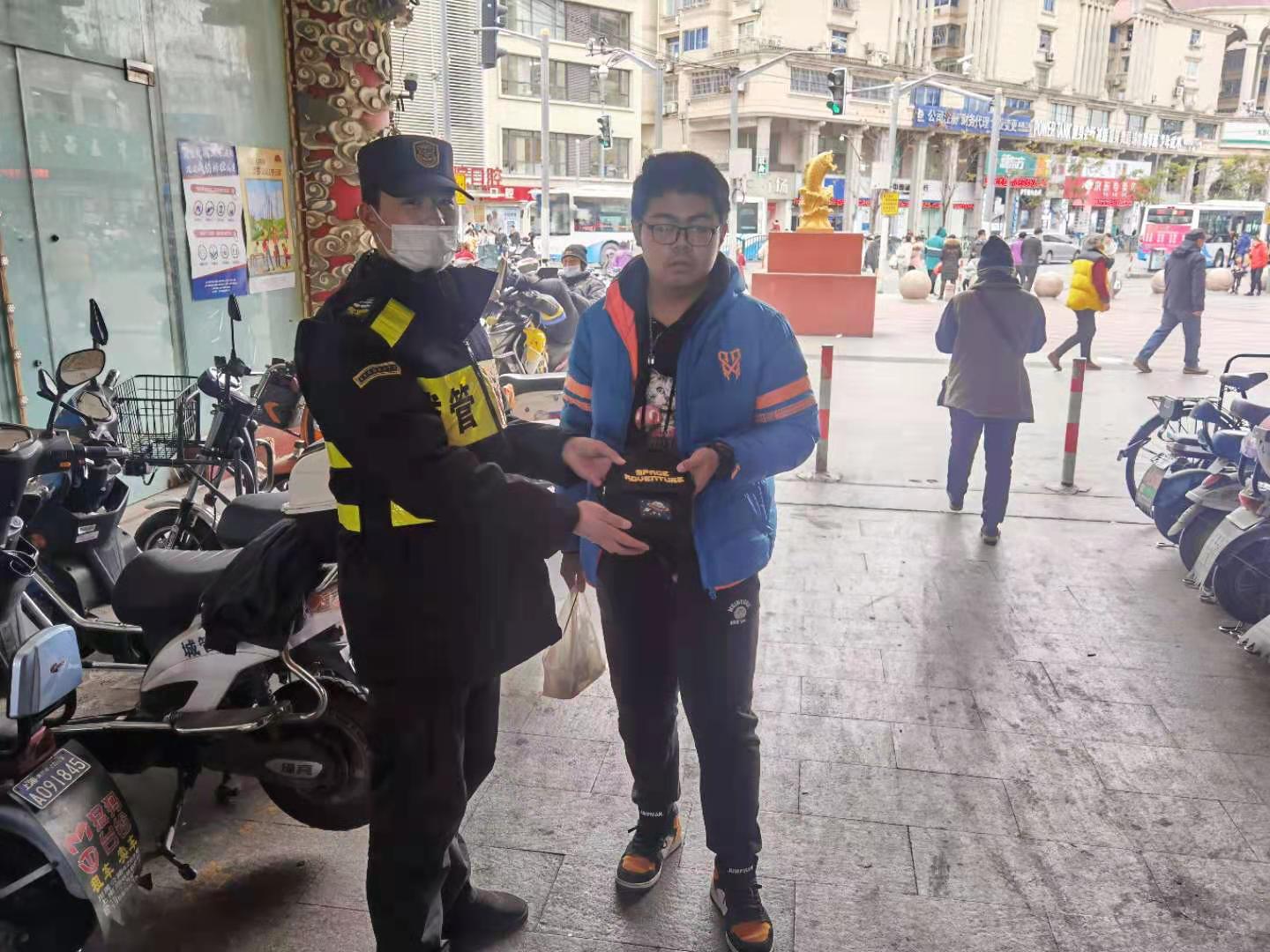 12月11日,宗保公司駐虹橋龍柏派出所交管項目隊員郭威撿到手提包歸還失主。