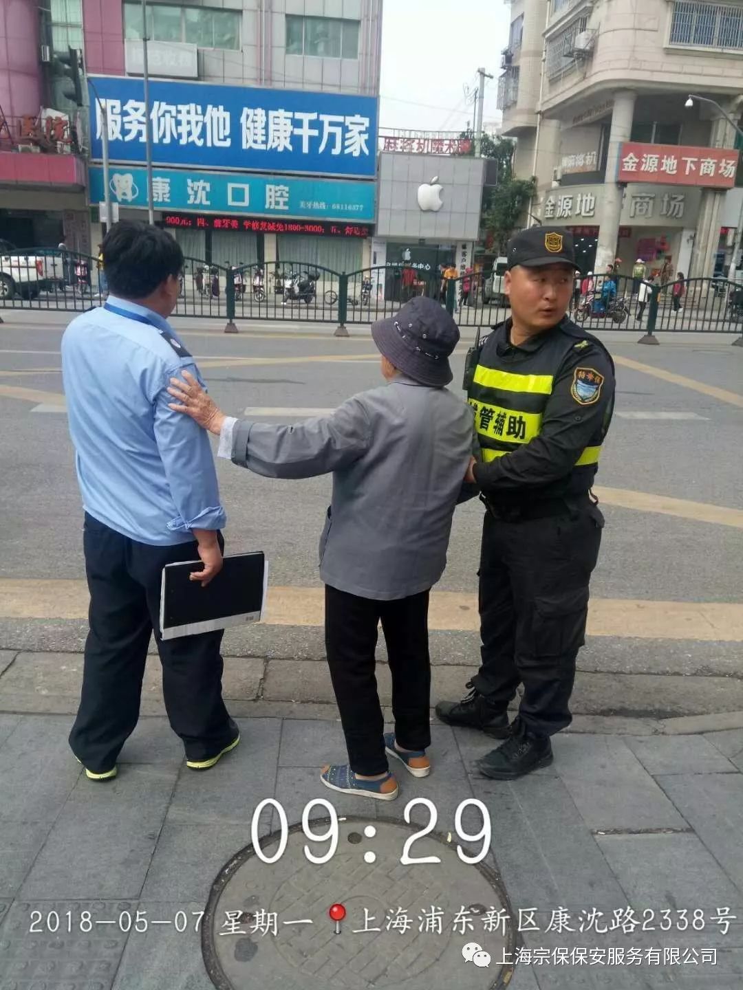 周浦市容師省偉報道:2018年5月7日上午9點(diǎn)左右我司周浦市容隊員張萬(wàn)林在巡邏至步行街時(shí)遇到一名神情恍惚的老人正在與一名過(guò)路女子說(shuō)著(zhù)什么,隊員張萬(wàn)林上前詢(xún)問(wèn)后得知老人患有老年癡呆癥。張萬(wàn)林耐心的安撫老人并詳細詢(xún)問(wèn),斷斷續續的從老人口中得知老人不記得回家的路了,身上也沒(méi)有什么有效的身份證件和聯(lián)系電話(huà)。
