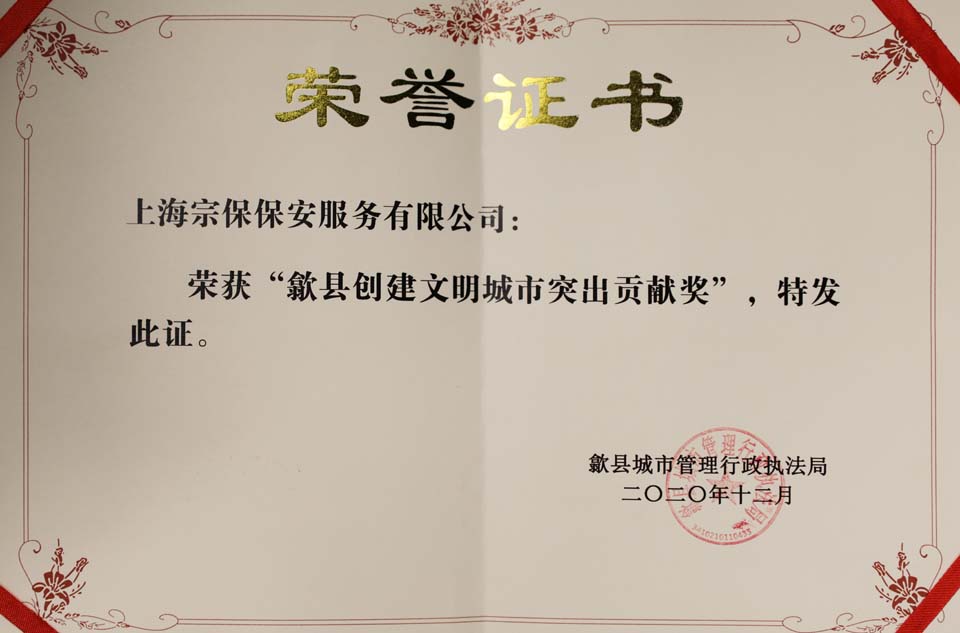 12月25日,歙縣城市管理行政執法局局長(cháng)凌暉一行來(lái)到公司,為獲評“創(chuàng )建全國文明城市先進(jìn)集體”、“歙縣創(chuàng )建文明城市突出貢獻獎”的上海宗保保安服務(wù)有限公司送來(lái)獎牌和榮譽(yù)證書(shū)。