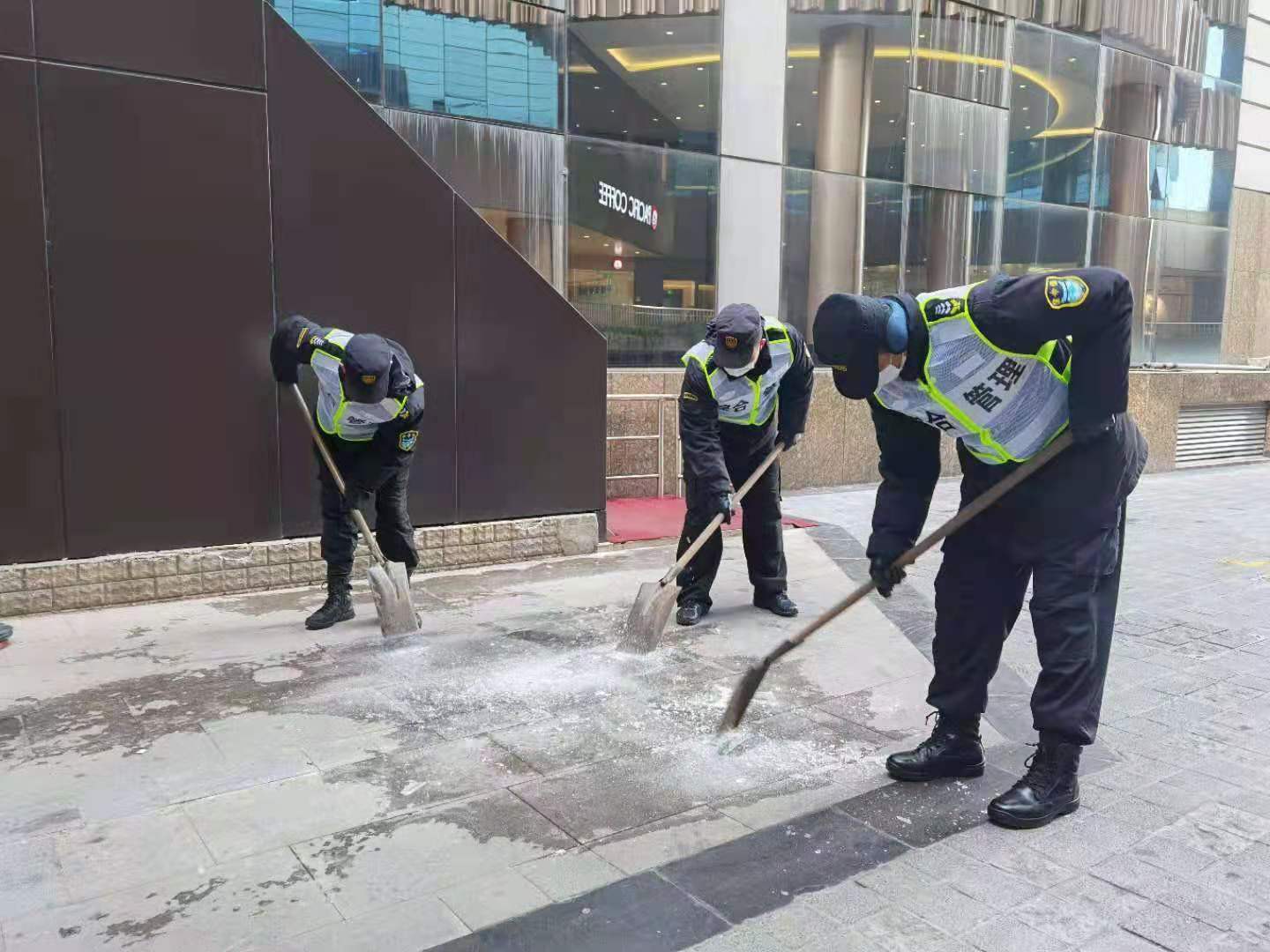 路面結冰存隱患 傾情守護助平安—陸家嘴綜合管理項目隊員守護平安路?