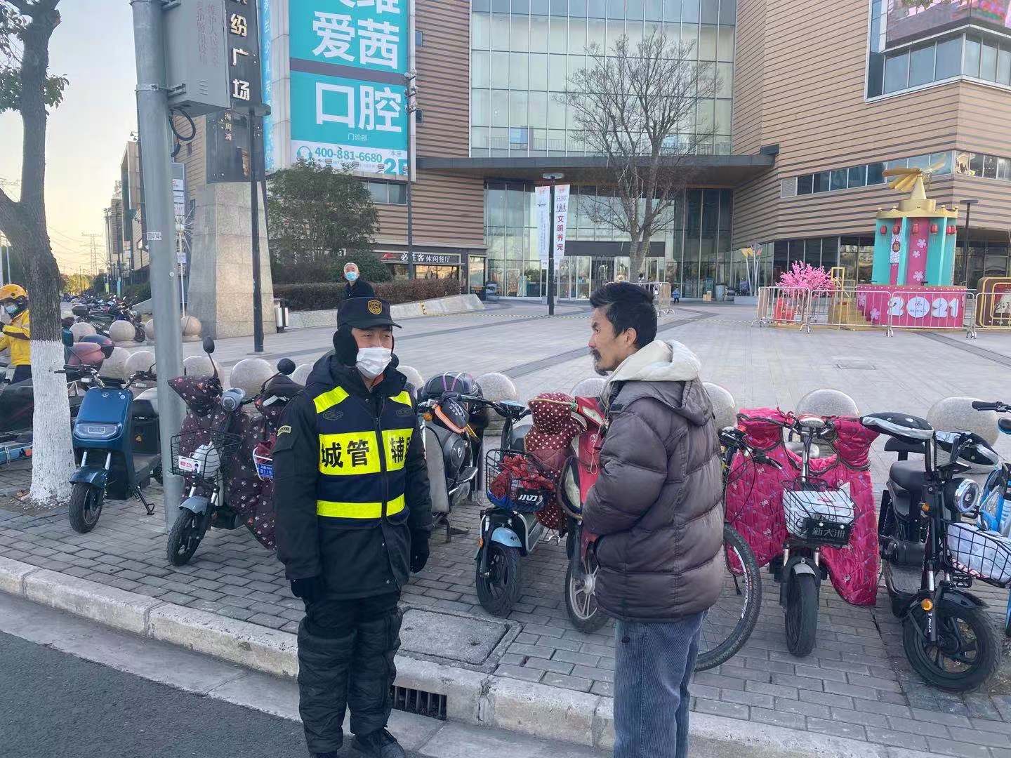 1月1日,宗保公司駐周浦市容隊員熊華幫助男子回家。