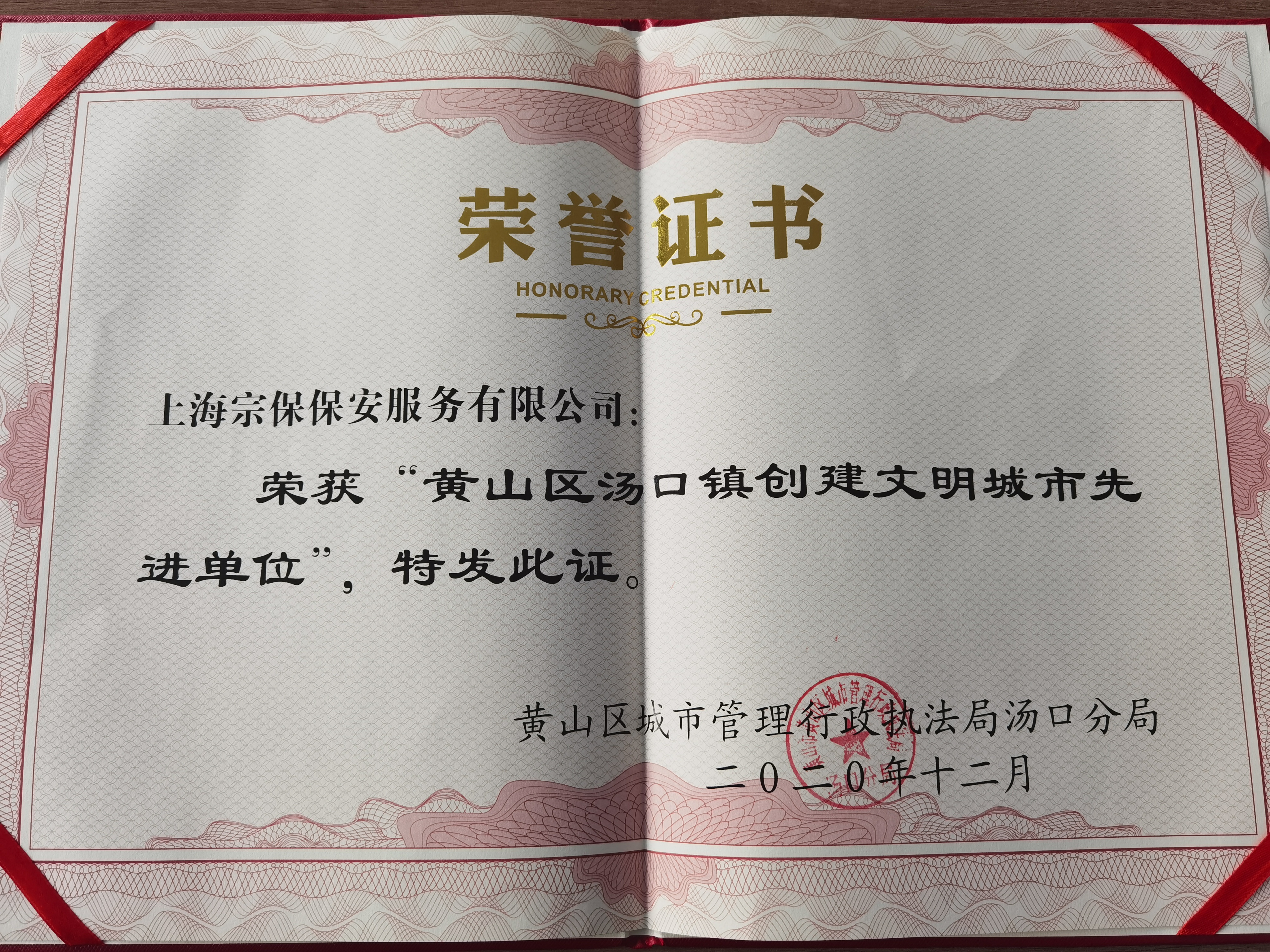 1月18日,黃山區湯口鎮黨委委員楊鵬翔、城管執法分局隊長(cháng)李智為獲評“創(chuàng )建文明城市先進(jìn)單位”的上海宗保保安服務(wù)有限公司,頒發(fā)獎牌、榮譽(yù)證書(shū),贈送錦旗。