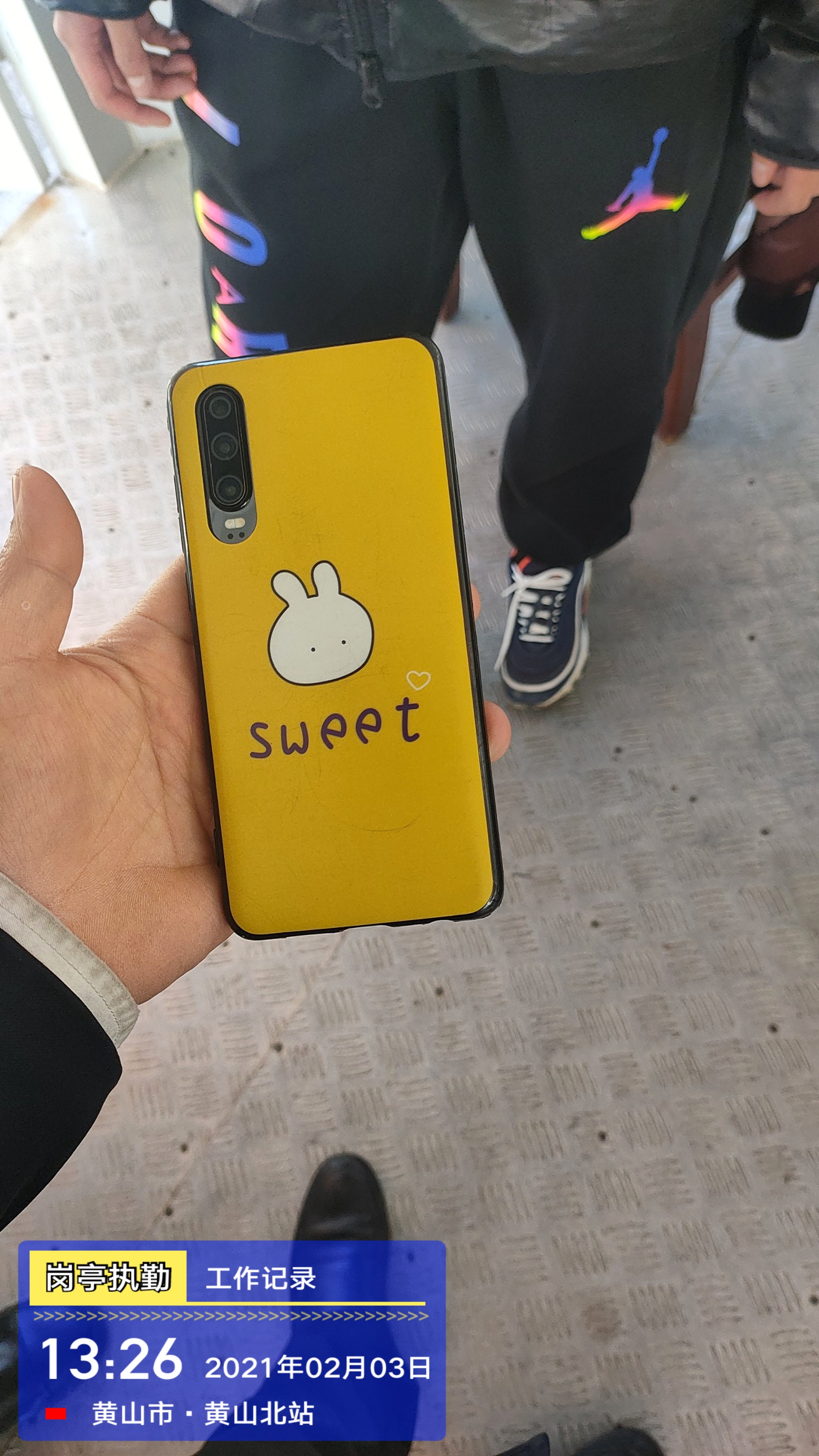 隨后,有一人打來(lái)電話(huà),十分著(zhù)急,說(shuō)自己是失主。汪鑫安慰對方:“你別著(zhù)急,我們是宗保黃山文旅項目的隊員,你的手機被我們撿到了,我們在高鐵北站站前崗亭等你來(lái)取?!?br /> 13:25,一人急急地趕到崗亭。在確認其身份后,汪鑫將手機還給了失主,失主再三向隊員表示感謝。