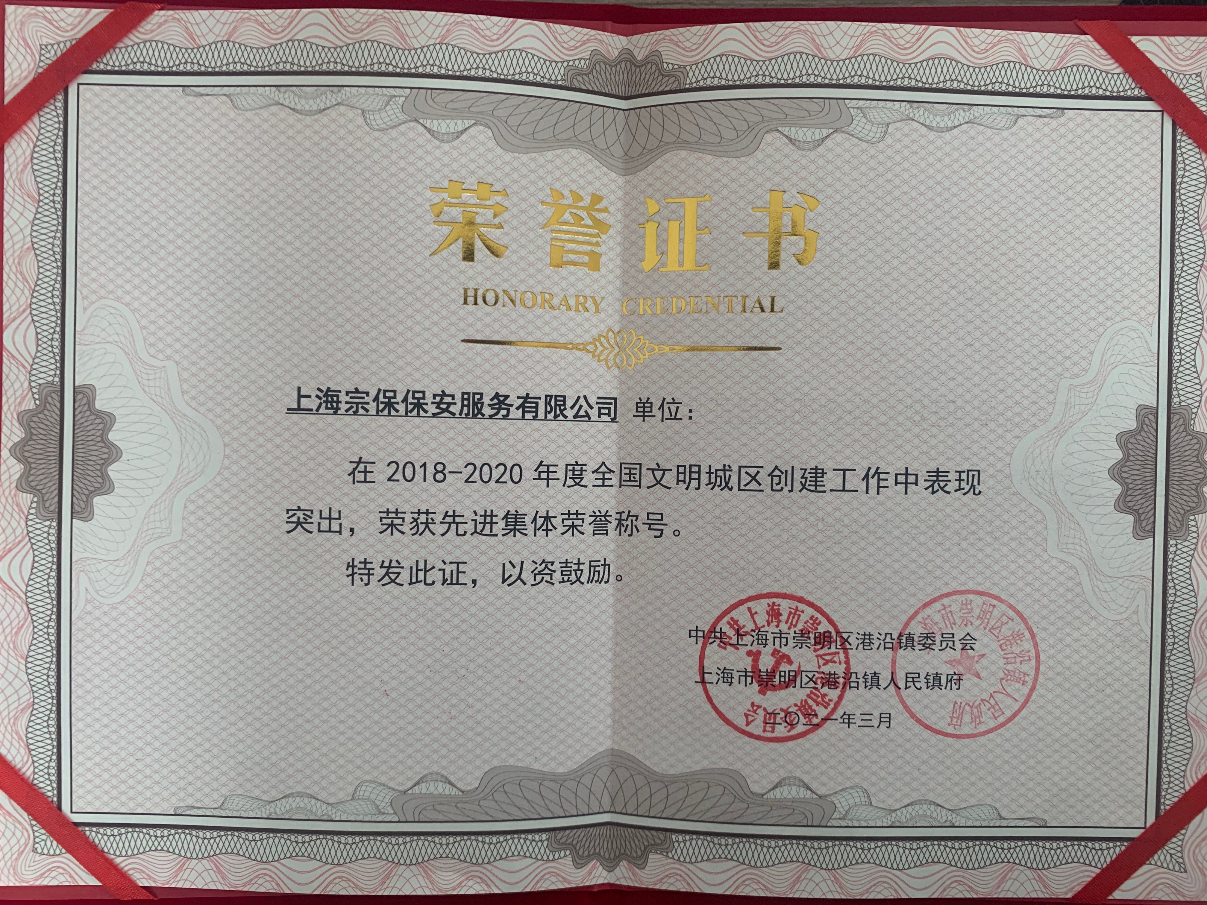 宗保公司駐港沿項目在2018-2020年度全國文明城區創(chuàng )建工作中表現突出,榮獲先進(jìn)集體榮譽(yù)稱(chēng)號。