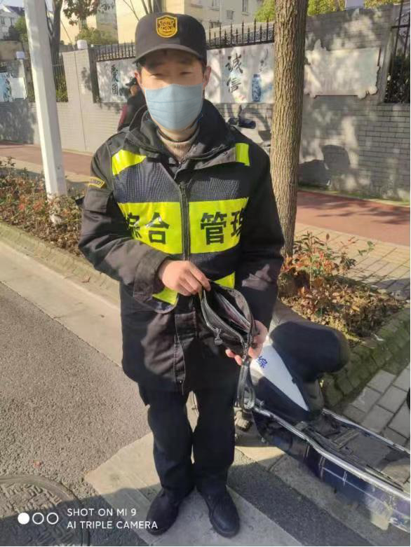 隊員巡邏撿提包 上交民警還失主—三林市容項目隊員撿到手提袋