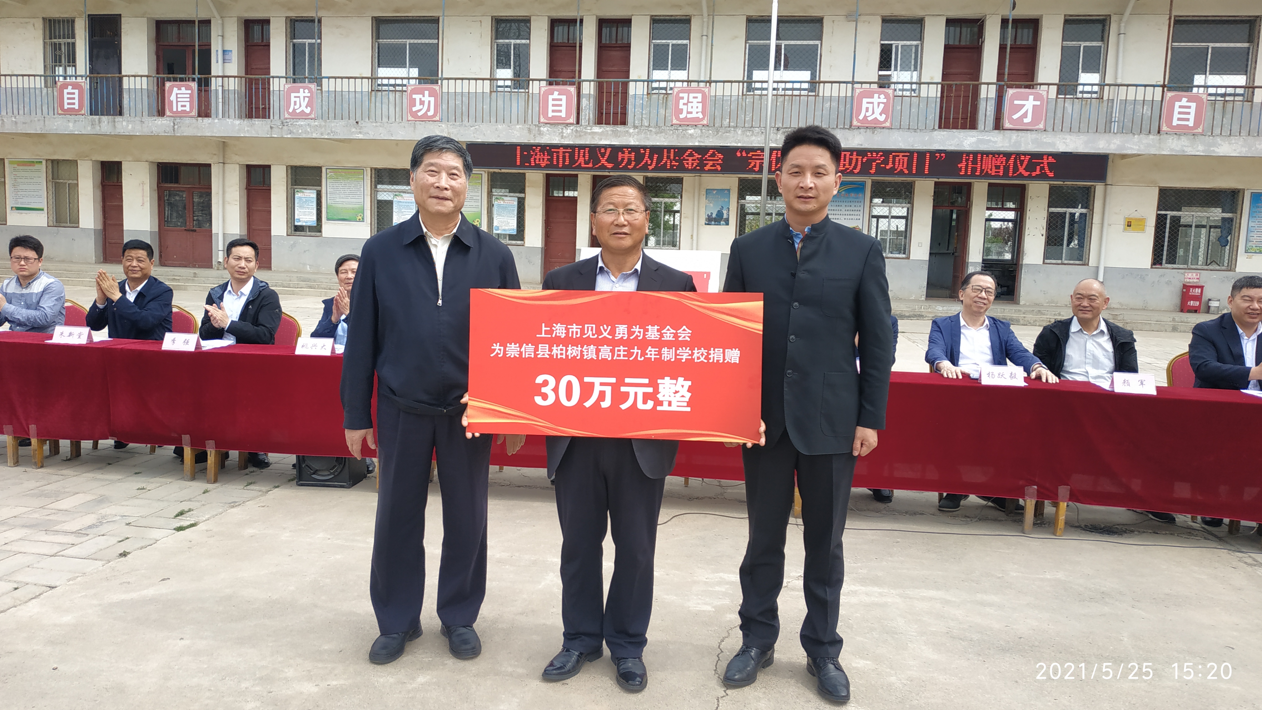 隨后,一行人又來(lái)到平?jīng)鍪谐缧趴h,實(shí)地參觀(guān)崇信縣高莊九年制學(xué)校,舉行上海市見(jiàn)義勇為基金會(huì )“宗保崇信助學(xué)項目”捐贈儀式,向崇信縣高莊九年制學(xué)校捐贈30萬(wàn)元。胡順康理事長(cháng)表示,基金會(huì )將持續資助經(jīng)濟困難學(xué)生,為莘莘學(xué)子順利完成學(xué)業(yè)提供堅實(shí)保障。
