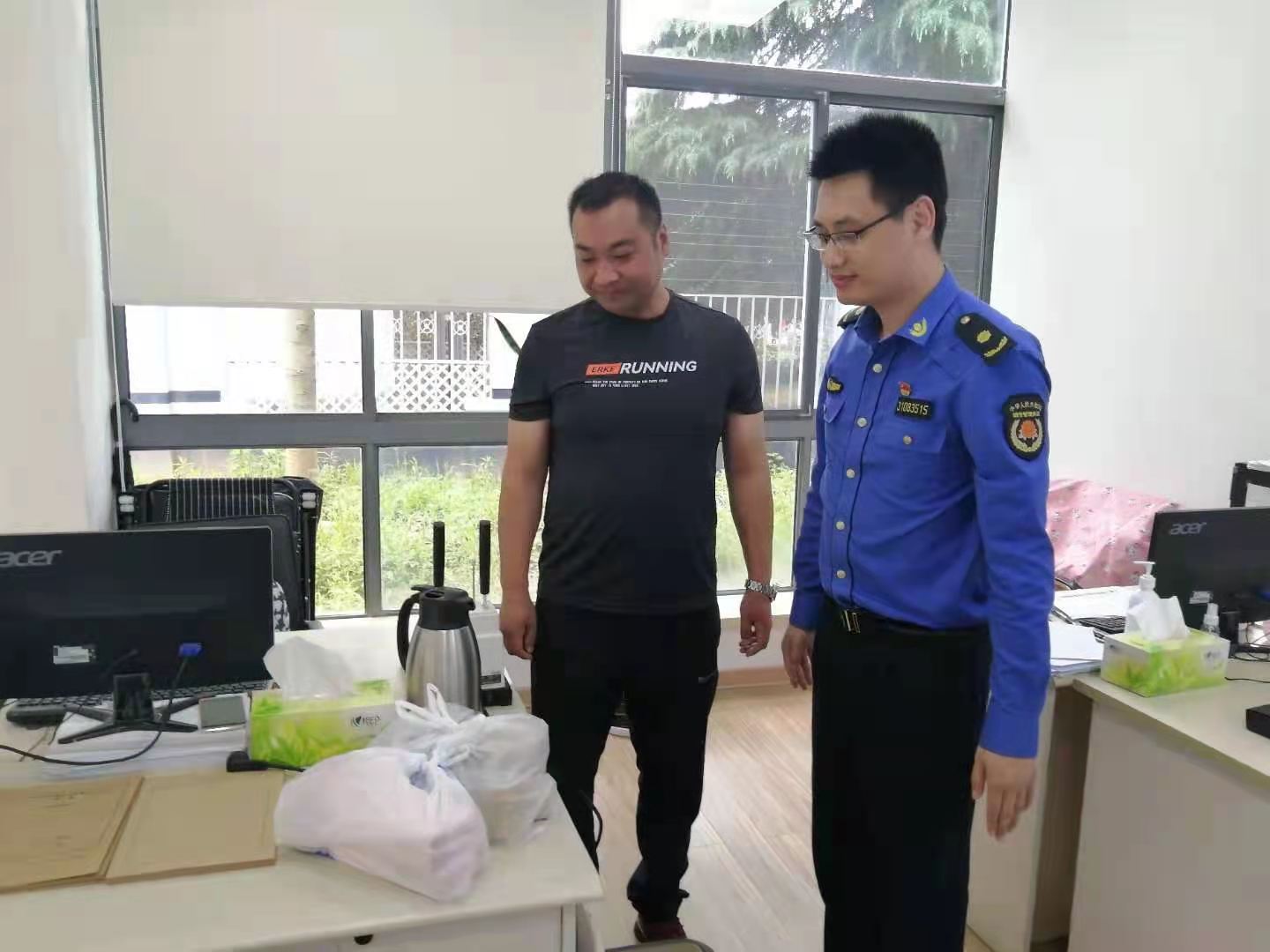 第二天巡邏,單野帶著(zhù)香煙找到商販,將香煙歸還給他,向他說(shuō)明了公司的工作紀律。同時(shí),告知其要遵守市容管理規定,不允許流動(dòng)擺攤,影響市容妨礙交通。