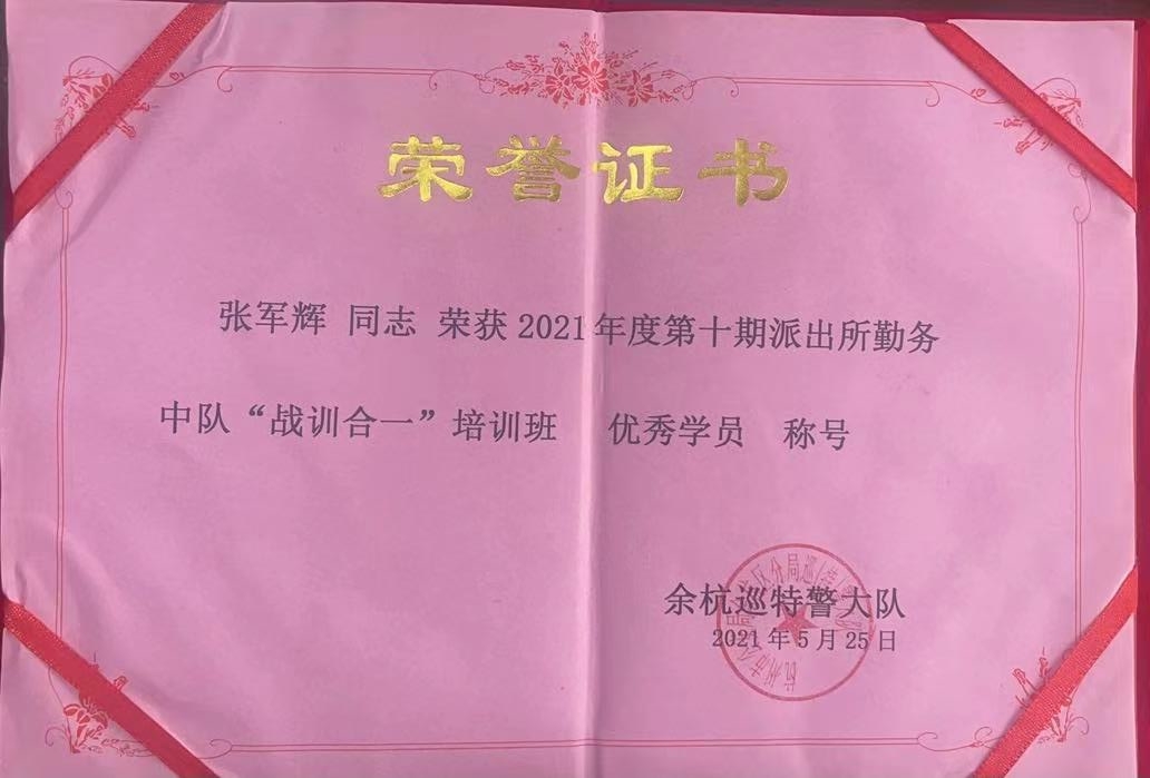 5月25日,浙江民泰駐星橋派出所項目2名隊員在“戰訓合一”培訓中喜獲佳績(jì)。