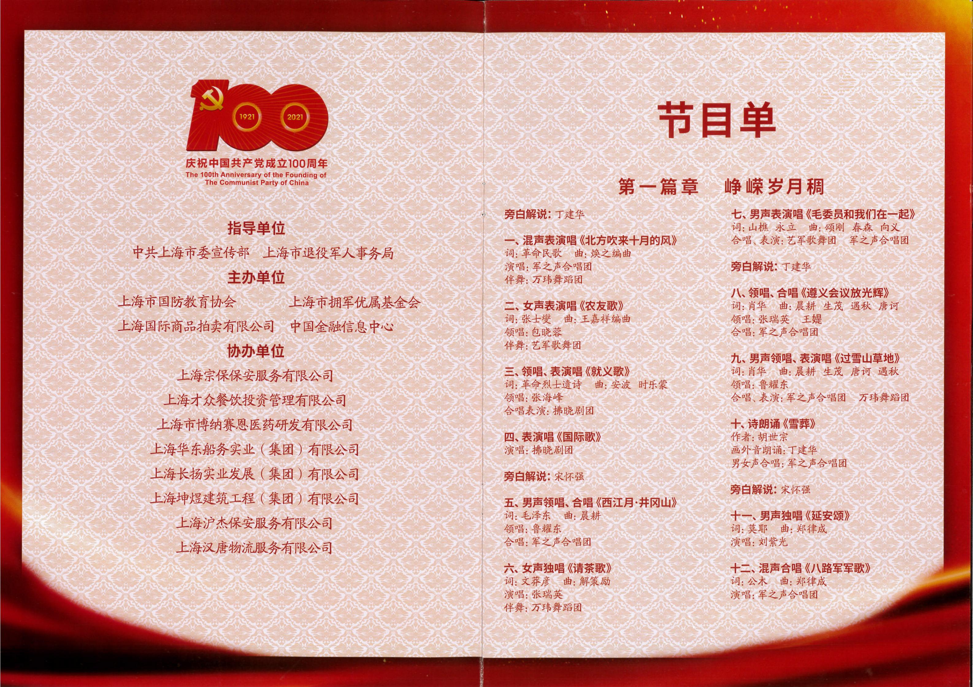 該演出是上海市慶祝中國共產(chǎn)黨成立100周年群眾性系列活動(dòng)之一,由中共上海市委宣傳部、上海市退役軍人事務(wù)局共同指導,宗保公司參與贊助。
