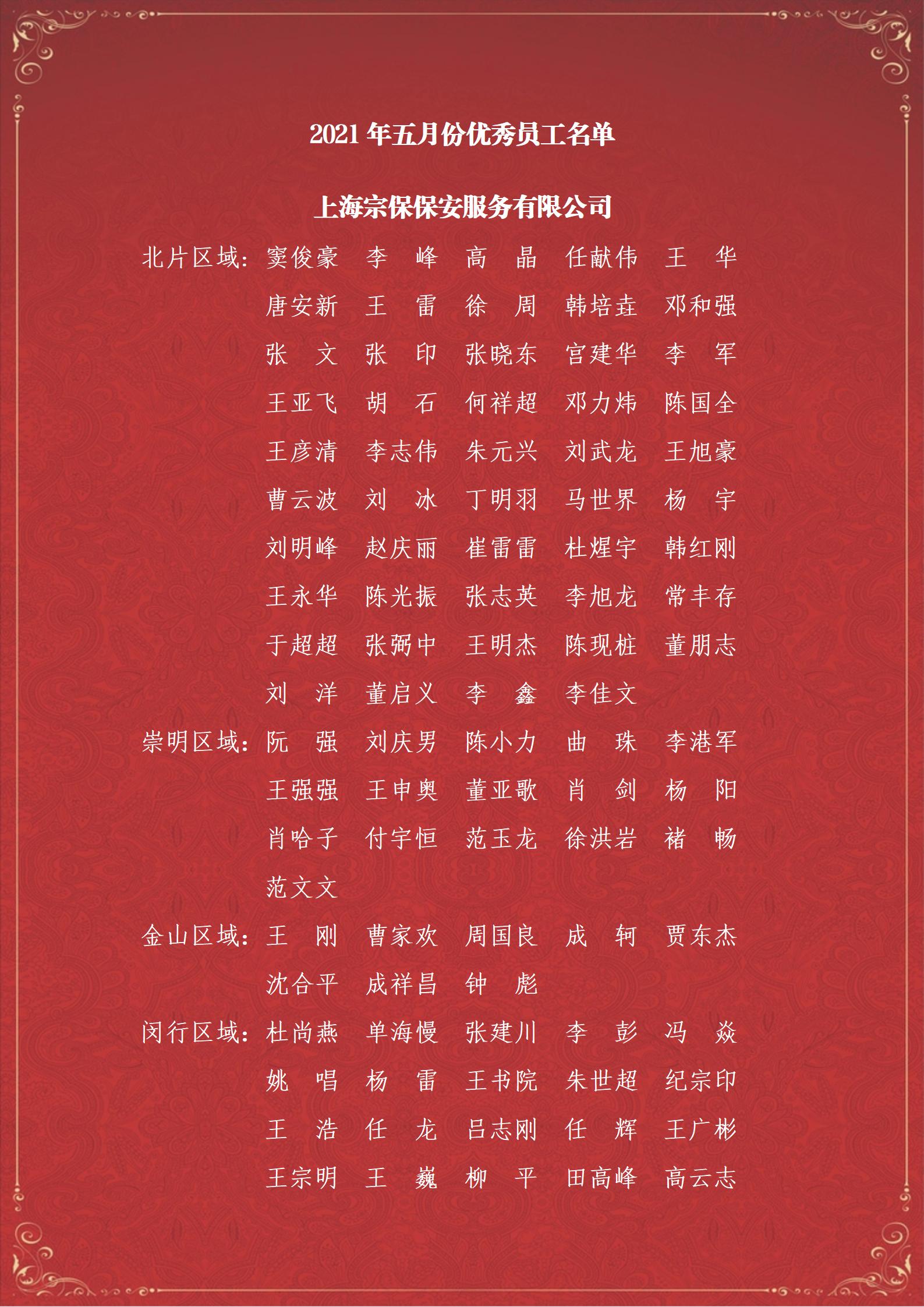 五月份,正值梅雨季節,天氣溫熱潮濕,且大型安?;顒?dòng)多,常態(tài)化疫情防控任務(wù)重。廣大員工按照公司的工作部署,落實(shí)甲方的工作要求,服從指揮、聽(tīng)從安排,盡心盡責、不怕辛苦,圓滿(mǎn)完成了甲方的工作任務(wù),贏(yíng)得了甲方的肯定和贊揚,期間涌現出了一批表現優(yōu)異的先進(jìn)個(gè)人和先進(jìn)典型。