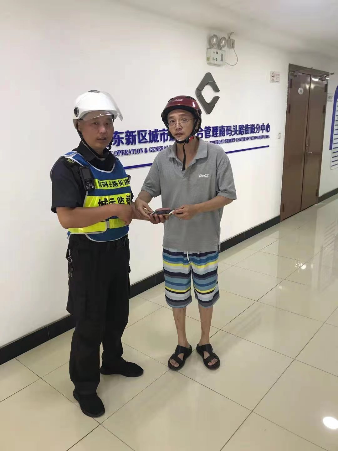 10分鐘后,仍沒(méi)有人前來(lái)尋找,周?chē)鴹澗桶咽謾C上交班組長(cháng),然后回到崗位繼續值勤。10:46,一男子打來(lái)電話(huà)尋找手機,班組長(cháng)與他約定在周浦城管中隊碰面。