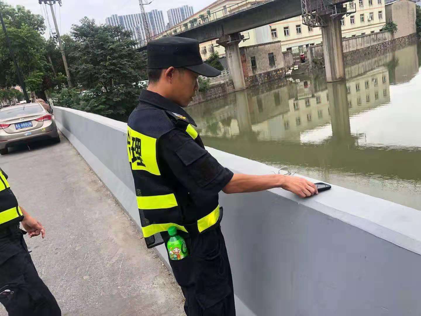 當日8:40,趙云飛在新螺路巡邏時(shí),發(fā)現河邊的護欄上有一副眼鏡和一部手機,但四周沒(méi)有人,便當即上報項目負責人,并按指示在現場(chǎng)尋找失主。后來(lái),一男子打來(lái)電話(huà)尋找手機。