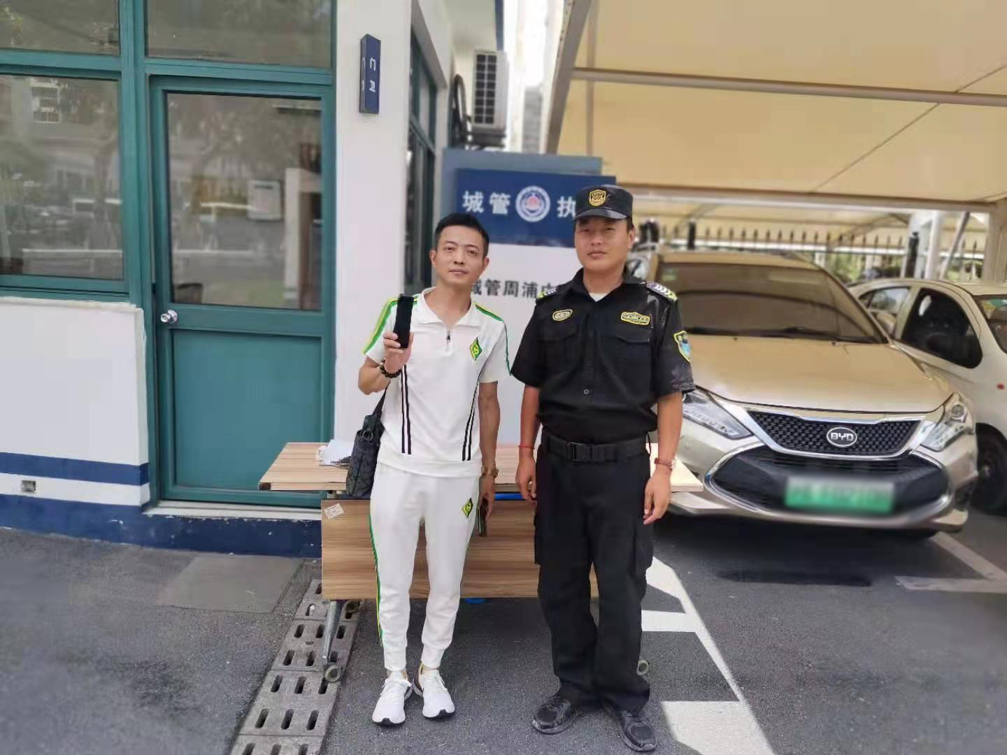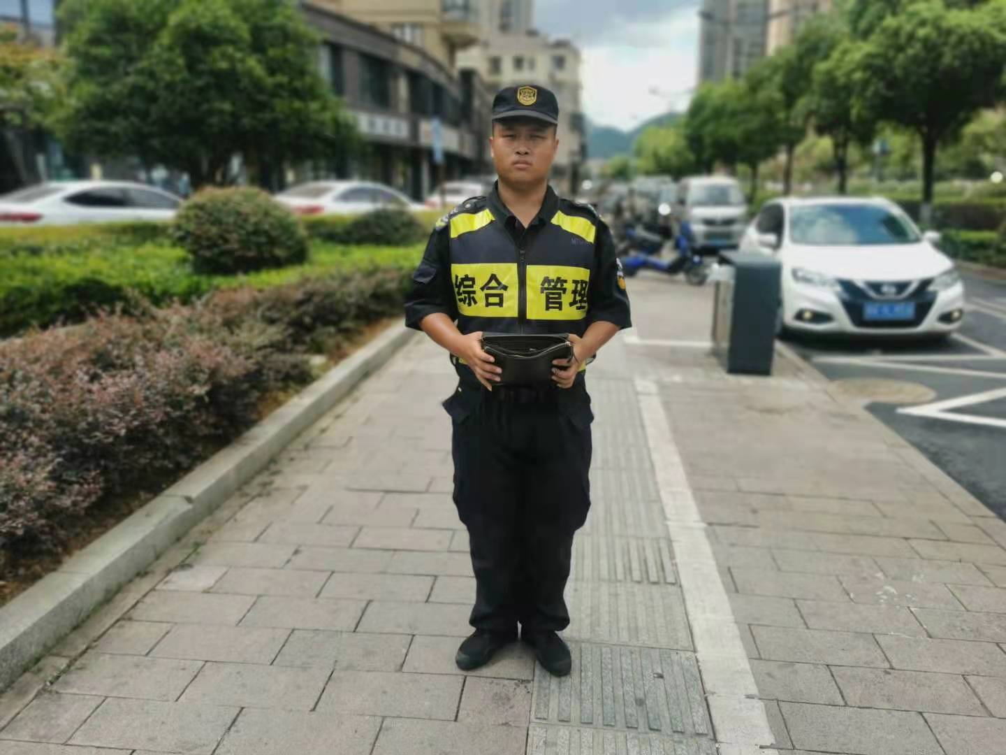 7月20日,浙江民泰駐閑林市容項目隊員撿到手提包上交城管中隊,尋找失主。