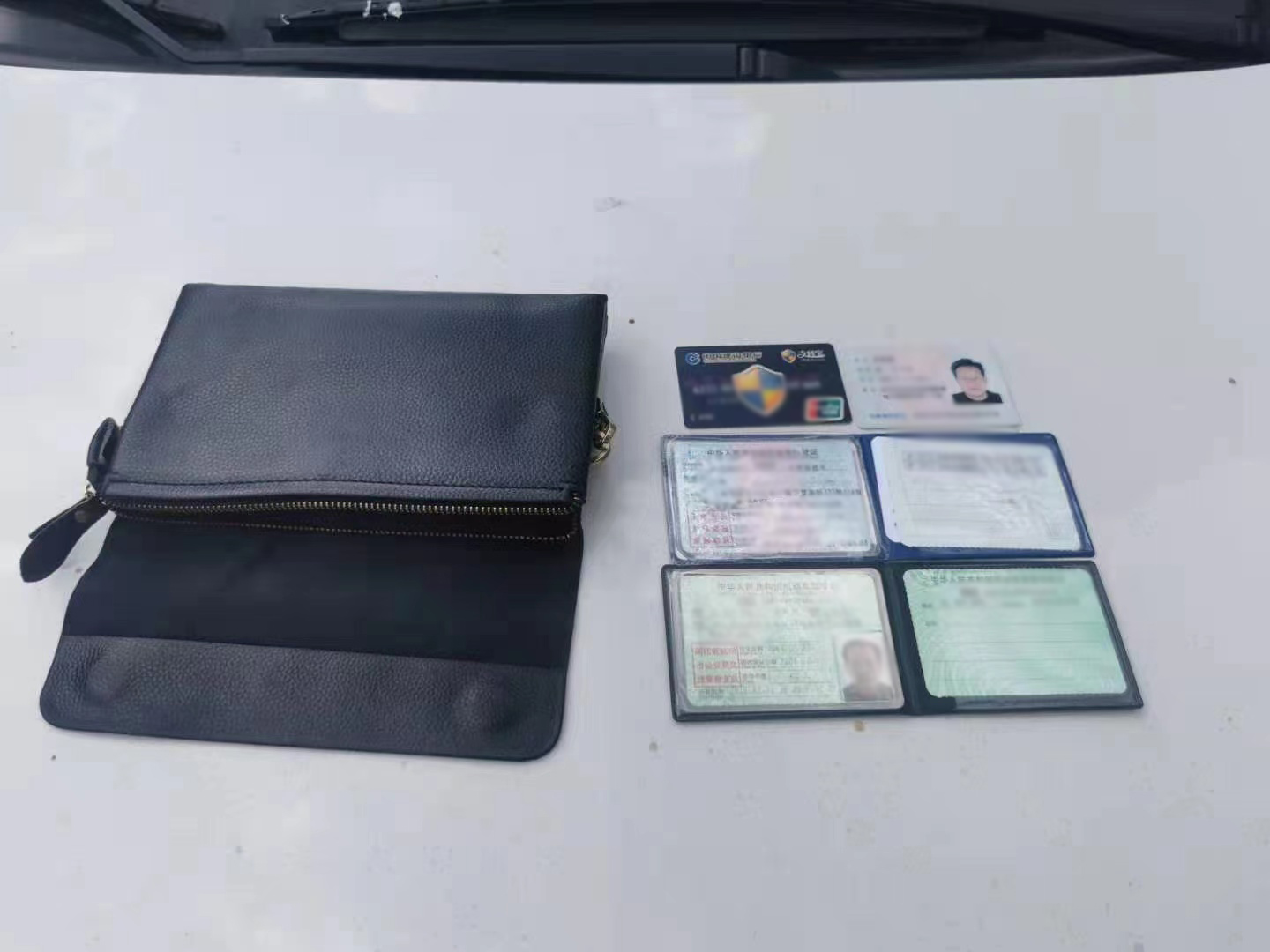 當天9:30,隋新、向欣杰在閑富中路與楊喬路交叉口巡邏時(shí),撿到一個(gè)手提包,包內有身份證、駕駛證、銀行卡和多張票據等物品。