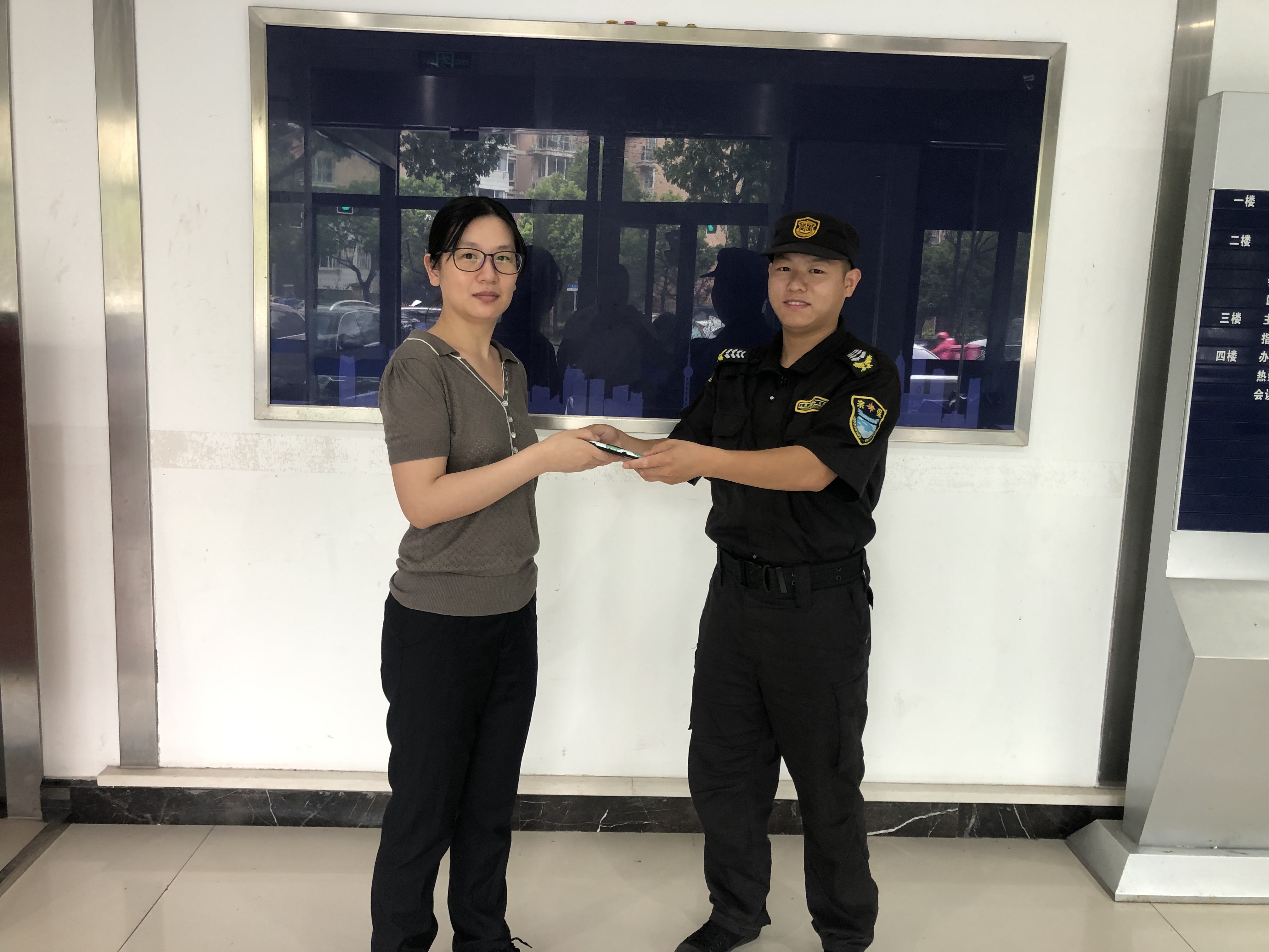 7月16日,宗保公司駐南碼頭街道城運中心項目隊員劉昆撿到手機歸還失主,受到好評。