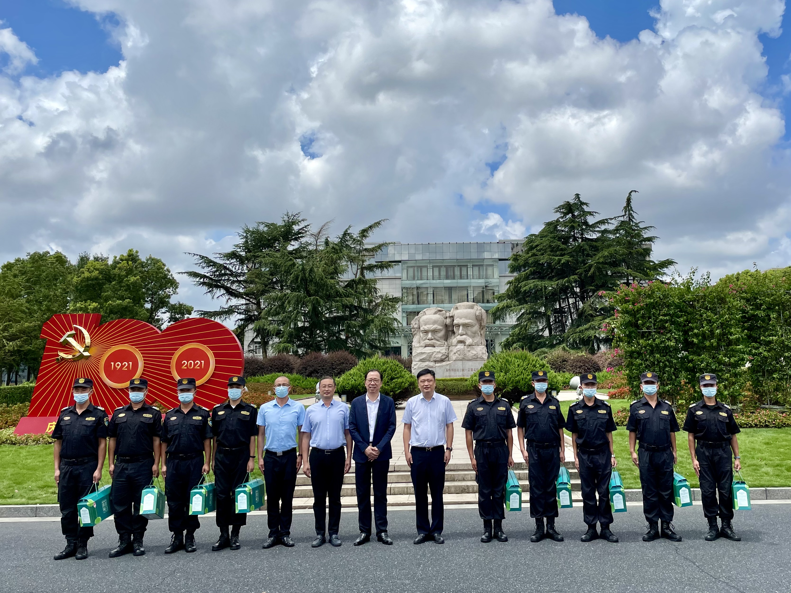 8月4日上午,上海市保安服務(wù)行業(yè)協(xié)會(huì )秘書(shū)長(cháng)楊躍毅一行,冒著(zhù)酷暑到上海市委黨??赐繂?wèn)宗保隊員。公司副總經(jīng)理蔣德玉全程陪同。