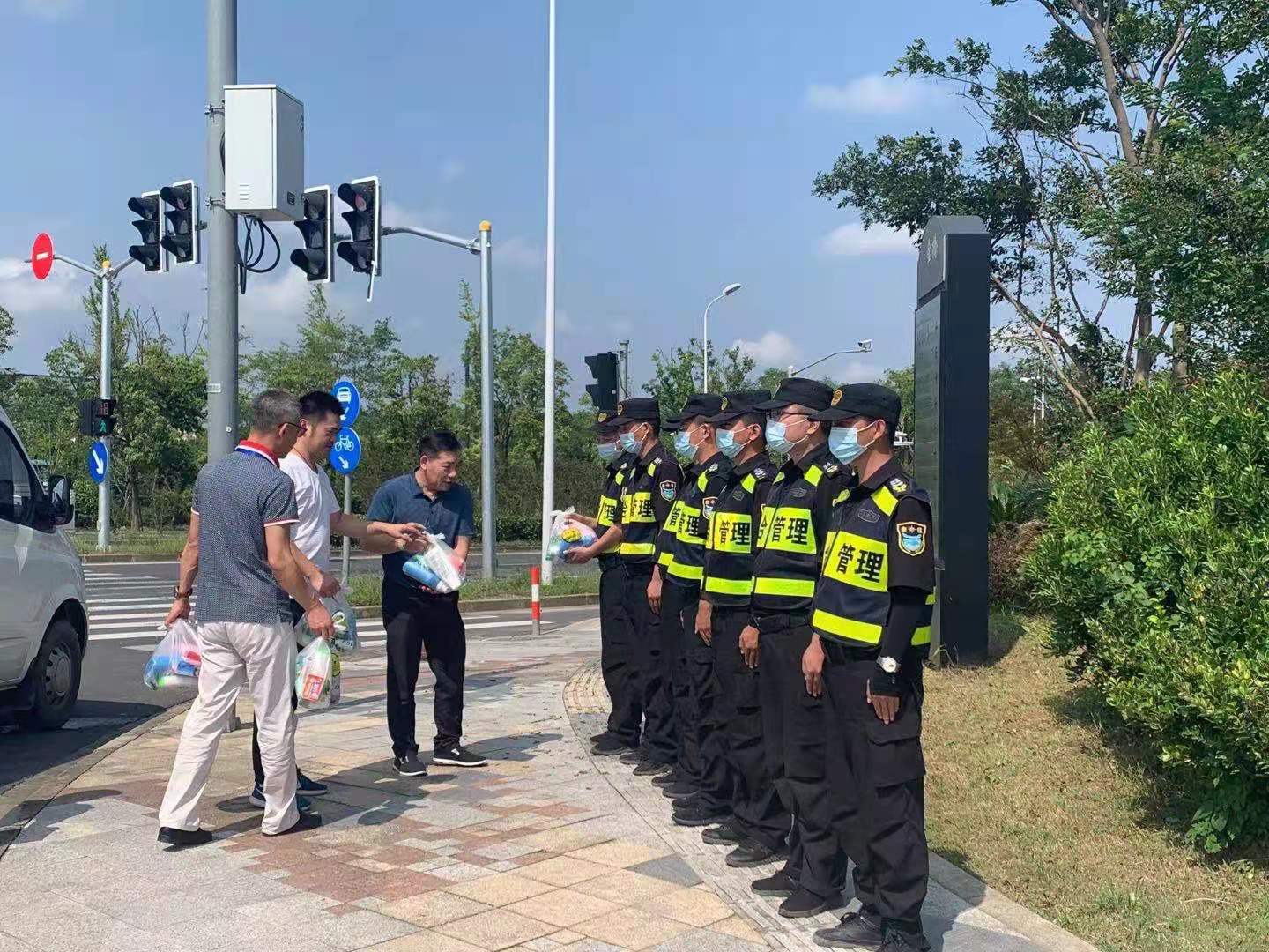 領(lǐng)導的關(guān)懷,大家十分感謝,并表示將不辜負各位領(lǐng)導的關(guān)心和期望,不懼高溫、腳踏實(shí)地完成好甲方安排的各項工作任務(wù),努力為社區營(yíng)造整潔優(yōu)美的市容環(huán)境添磚加瓦。