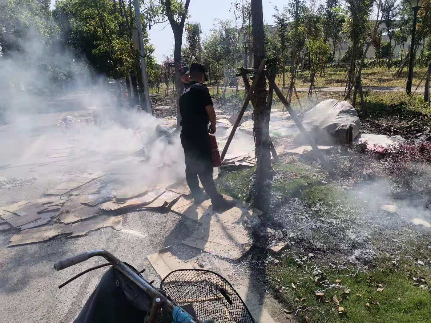 騎三輪車(chē)的師傅一再向隊員表示感謝,并為自己拉著(zhù)紙盒還吸煙、差點(diǎn)釀成大禍而自責。同時(shí),隊員也提醒三輪車(chē)師傅,廢紙品特別容易起火燃燒,一定要有防火意識,避免意外的發(fā)生。