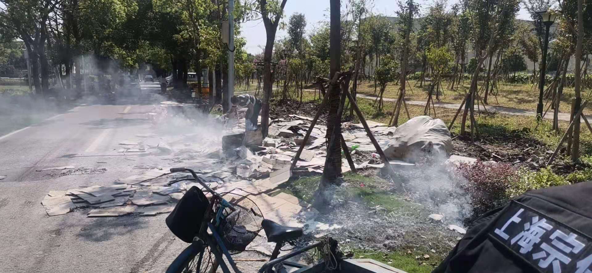 當日9:26,界浜村消防站隊員在進(jìn)行訓練時(shí),發(fā)現界浜村窯墩路上一輛行走的三輪車(chē)上的紙盒冒著(zhù)黑煙,火苗直往上竄,而騎車(chē)的師傅沒(méi)有察覺(jué)。在這危急時(shí)刻,4名隊員馬上停止訓練,帶上滅火器材奔到現場(chǎng),迅速展開(kāi)撲救。