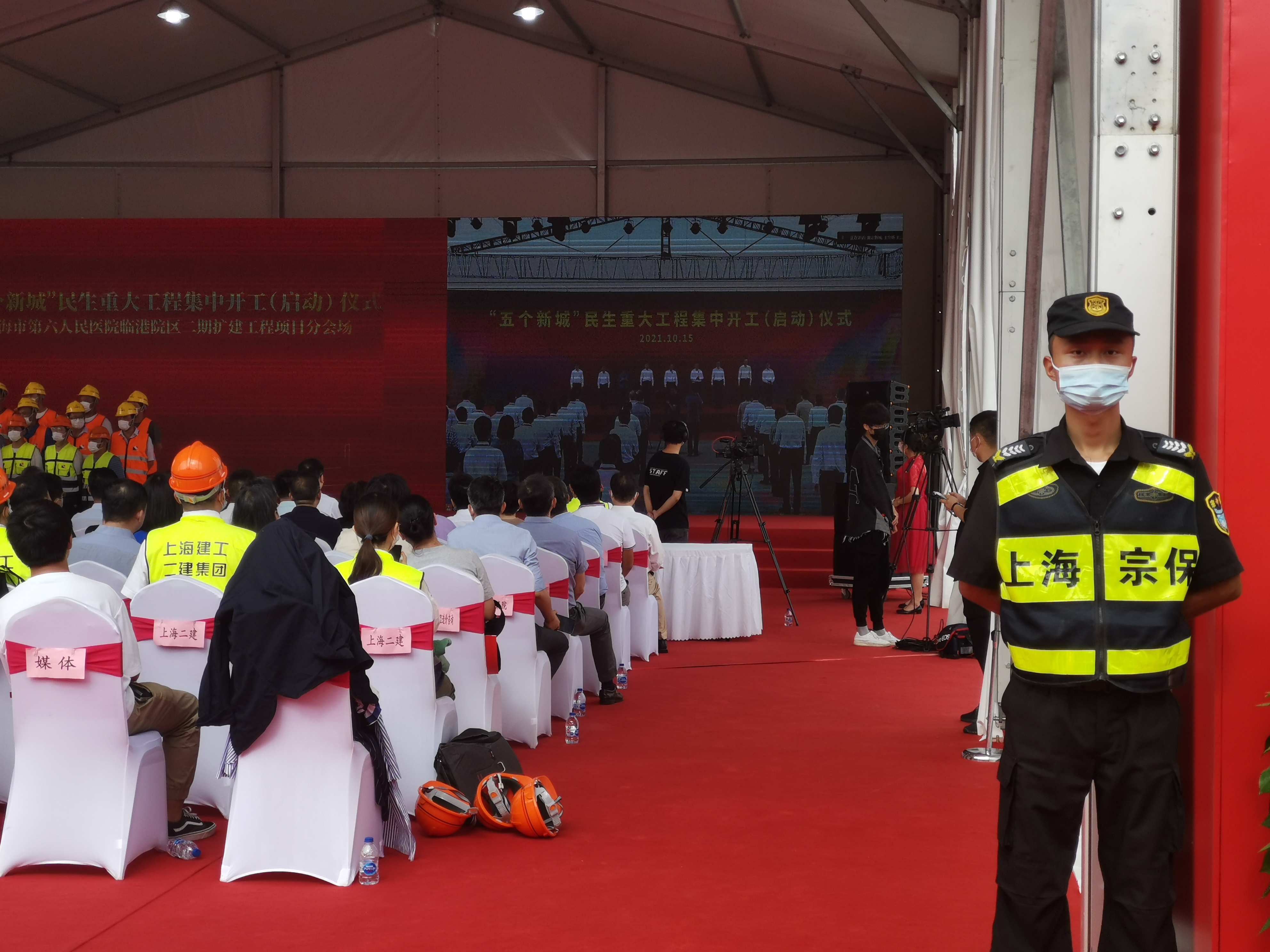 10月15日,上海市“五個(gè)新城”民生重大工程集中開(kāi)工暨第六人民醫院臨港院區二期擴建工程開(kāi)工儀式在六院院區舉行,宗保公司承擔此次開(kāi)工儀式安保秩序維護任務(wù)。