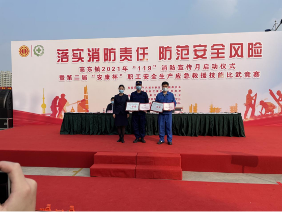 高東微型消防站的隊員們參加高東鎮2021年“119”消防宣傳月啟動(dòng)儀式暨第二屆“安康杯”職工安全生產(chǎn)應急救援技能比武競賽,取得了二等獎的好成績(jì)。