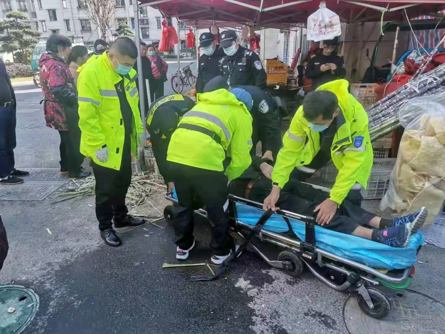 民警很快趕到現場(chǎng),一位自稱(chēng)是男子鄰居的市民告訴民警,男子曾有高血壓、中風(fēng)等病史。不一會(huì )兒,救護車(chē)也抵達現場(chǎng),楊航將了解到的男子既往病史告知醫護人員,并協(xié)助醫護人員把男子抬上救護車(chē),送往醫院救治。
