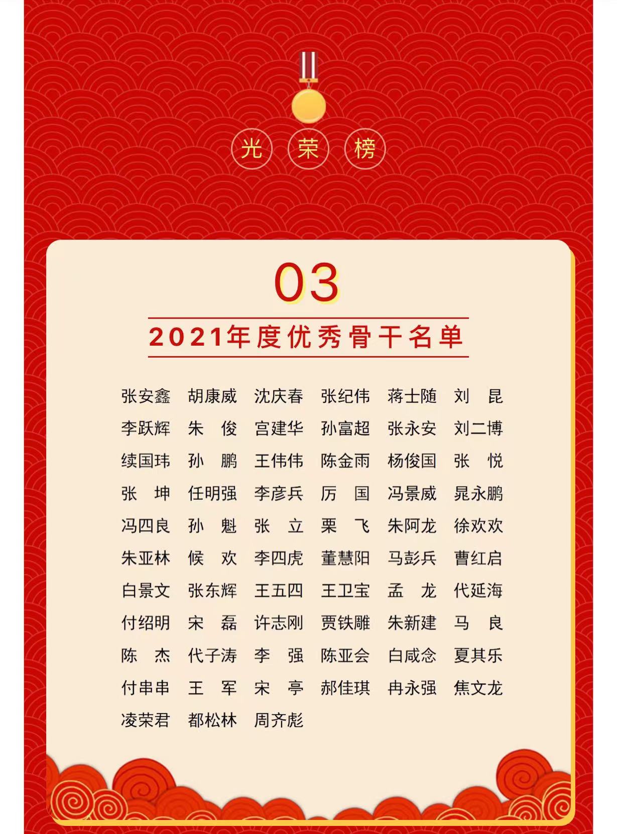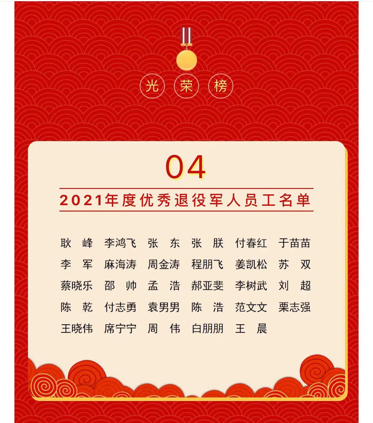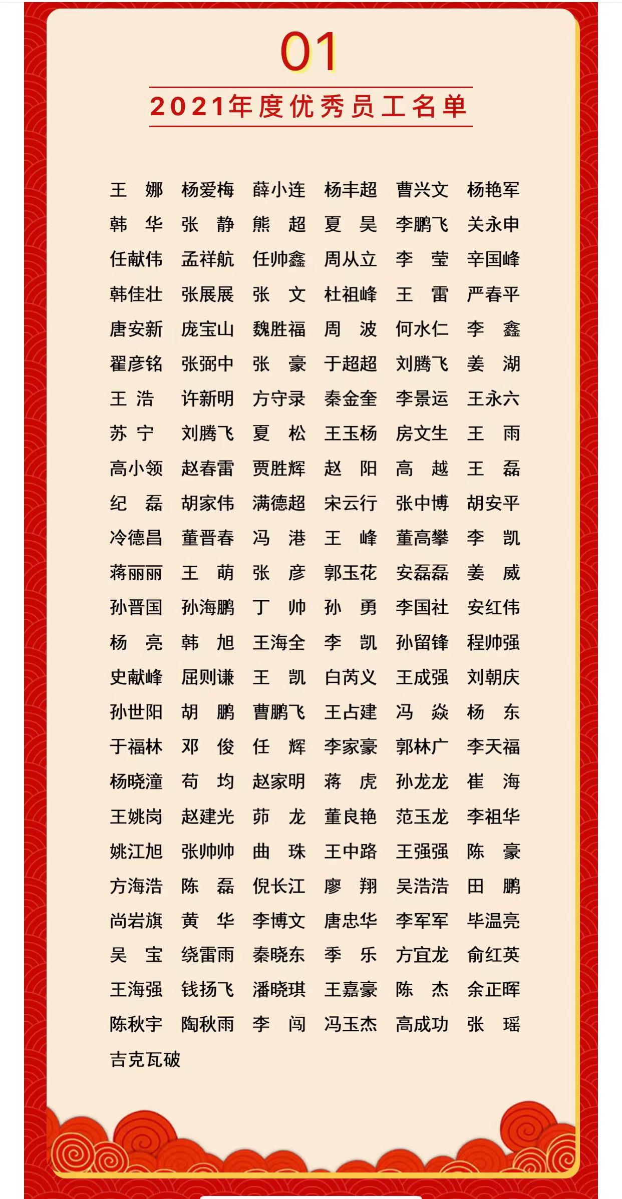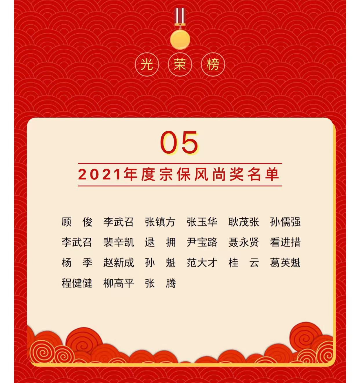 公司董事會(huì )在各項目、各區域推薦,廣泛征求意見(jiàn)的基礎上,評選出了13個(gè)“優(yōu)秀團隊”、29名“優(yōu)秀退役軍人員工”、61名“抗疫先進(jìn)個(gè)人”、21名“宗保風(fēng)尚獎”、63名“優(yōu)秀骨干”和151名“優(yōu)秀員工”。