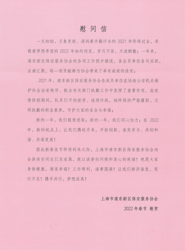 協(xié)會(huì )領(lǐng)導的關(guān)懷,宗保員工們備受鼓舞。大家表示,將繼續發(fā)揚吃苦耐勞、樂(lè )于奉獻的精神,認真履職、文明值勤,全力配合做好甲方賦予的各項工作任務(wù),努力為浦東新區平安建設作出應有的貢獻。