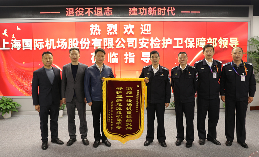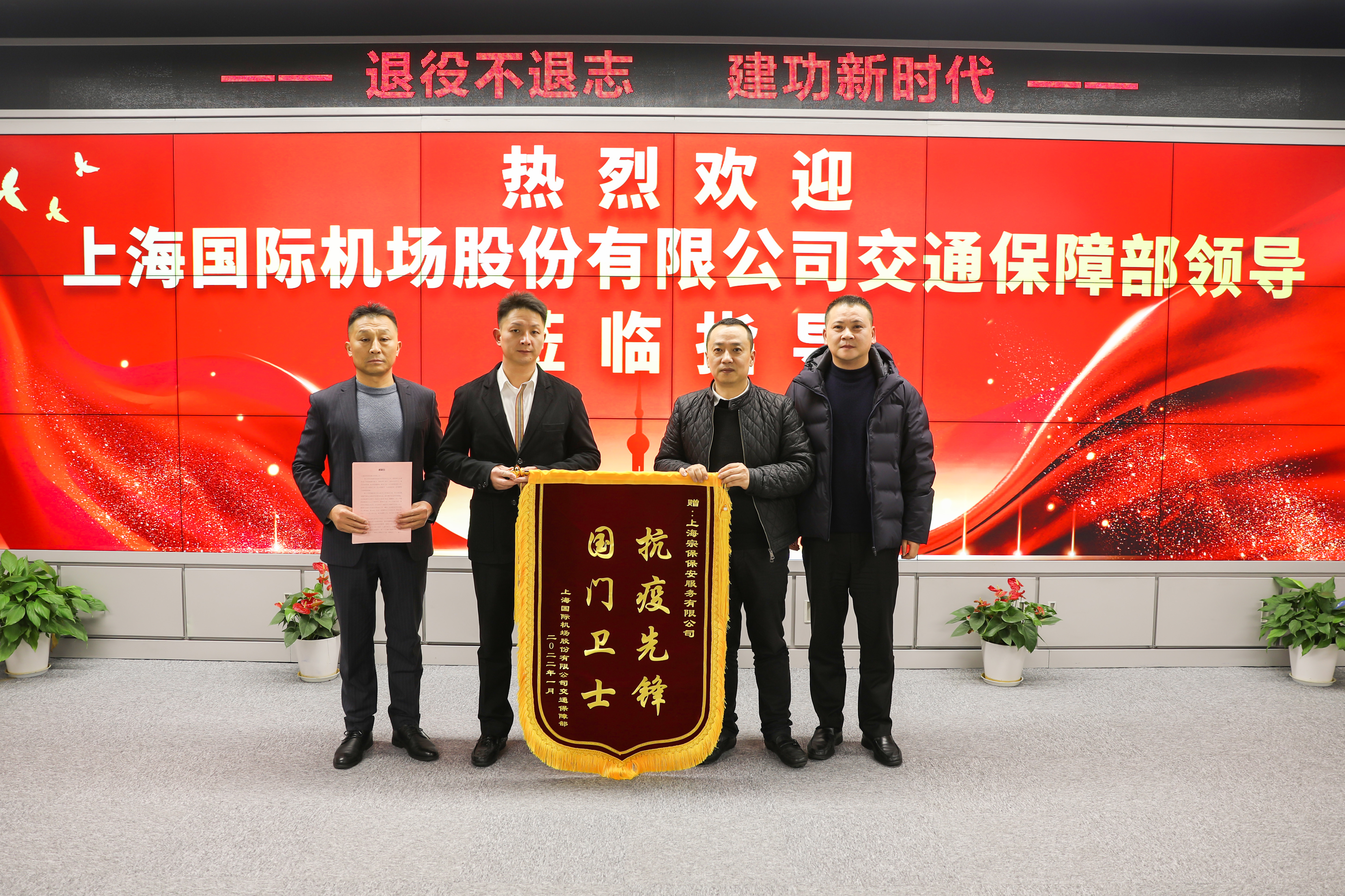 1月25日上午,上海國際機場(chǎng)股份有限公司安檢護衛保障部黨委書(shū)記鮑飛榮、紀委書(shū)記陳長(cháng)波將一面繡有“防疫一線(xiàn)勇挑重擔當尖兵 守護空港忠誠履職保平安”的錦旗送到宗保公司,感謝公司對浦東機場(chǎng)防疫工作的大力支持和突出表現。