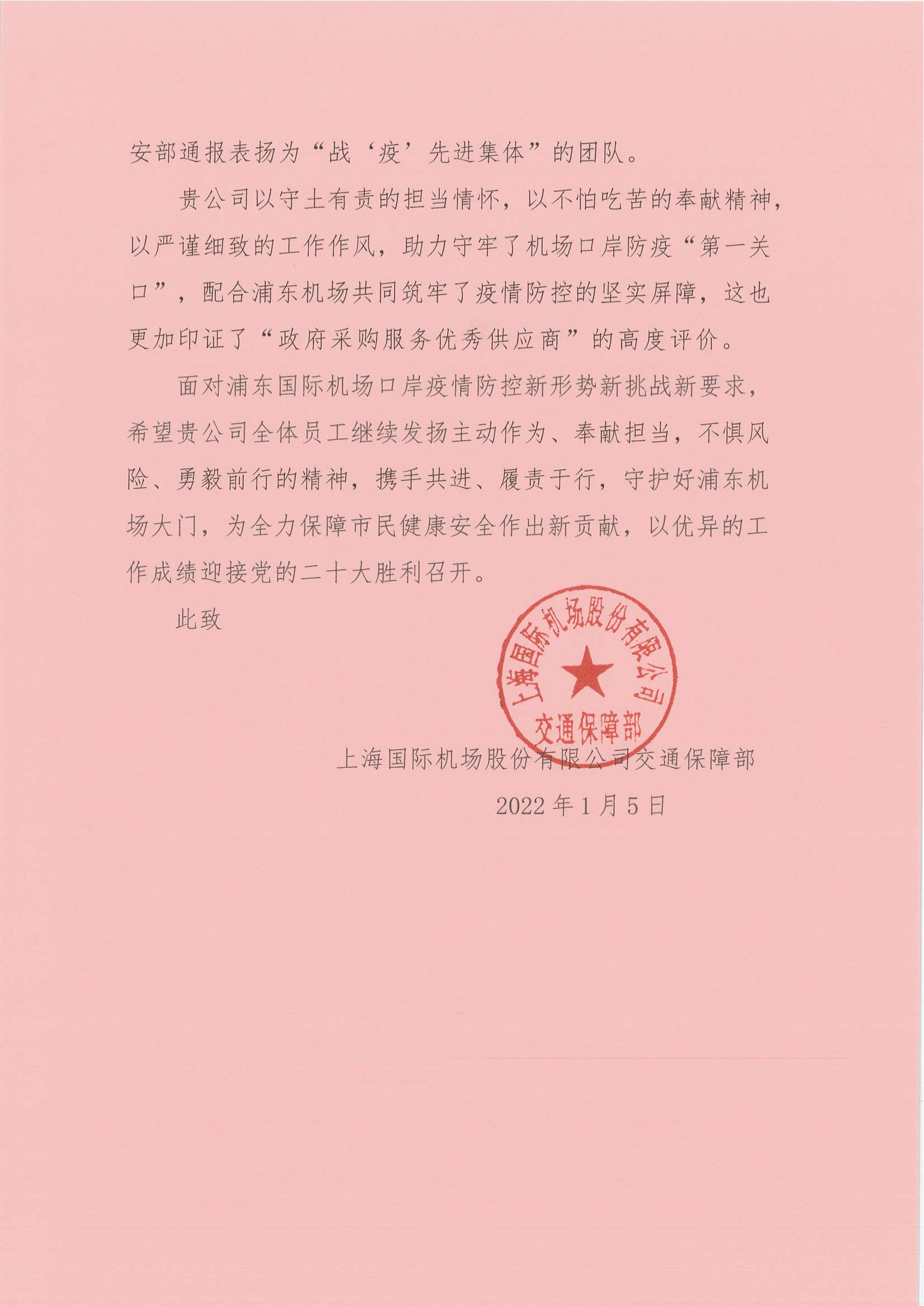 —上海國際機場(chǎng)股份有限公司交通保障部送來(lái)錦旗和感謝信