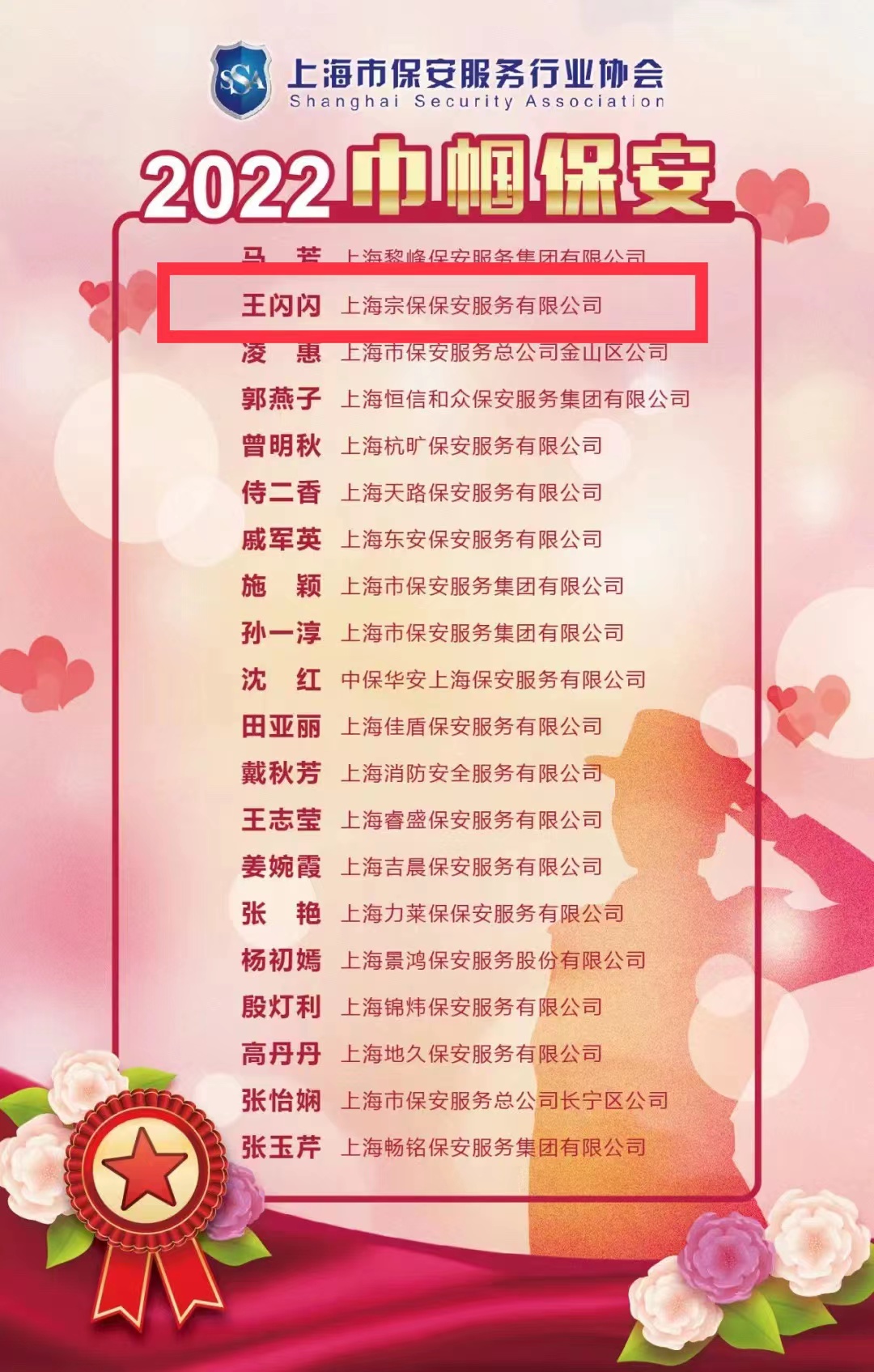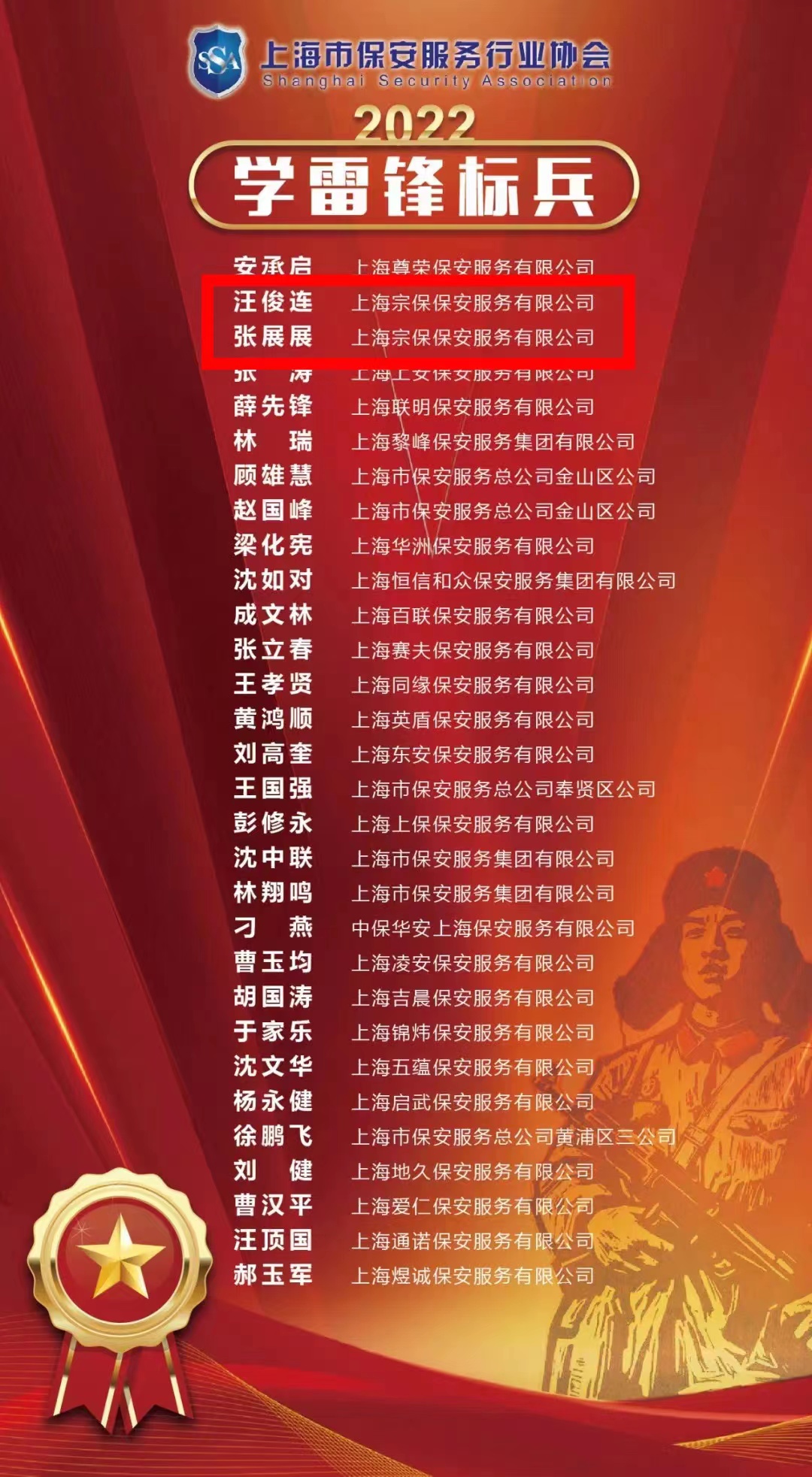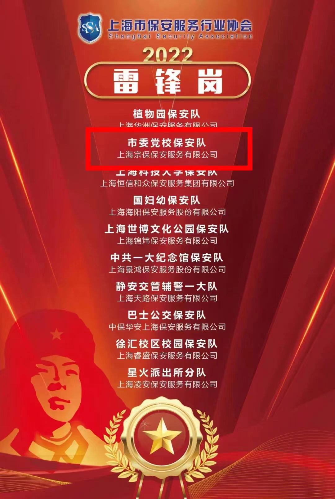 近日,上海市保安服務(wù)行業(yè)協(xié)會(huì )公布了“雷鋒崗”“學(xué)雷鋒標兵”“巾幗保安”評選結果,宗保公司1個(gè)項目隊和3名隊員分獲殊榮。