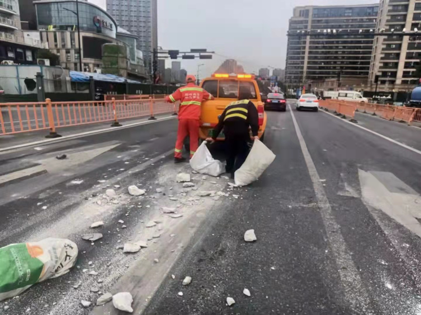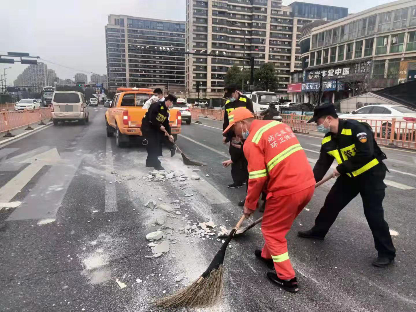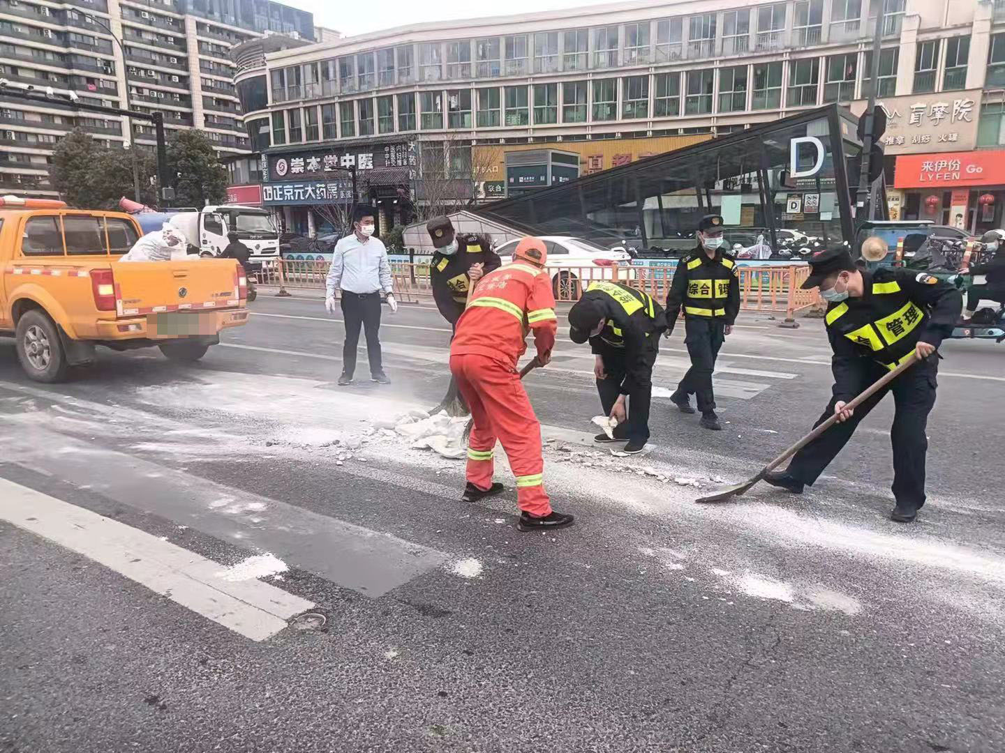 見(jiàn)此情形,大家趕緊上前,楊培發(fā)引導路過(guò)車(chē)輛減速慢行,其他隊員與隨后趕到現場(chǎng)的保潔員一起進(jìn)行清理。經(jīng)過(guò)20多分鐘的努力,路面很快被清掃干凈,道路恢復了通暢,此舉贏(yíng)得了過(guò)往市民群眾的稱(chēng)贊。