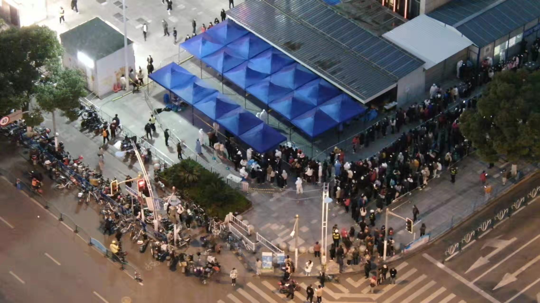 啟用無(wú)人機助力疫情防控,對大型核酸檢測現場(chǎng)進(jìn)行航拍,實(shí)時(shí)將現場(chǎng)畫(huà)面傳輸至應急管理中心,為遠程指揮提供數據和情景支撐。通過(guò)無(wú)人機搭載的喊話(huà)器,勸導小區居民積極參加核酸檢測,并提示大家服從現場(chǎng)安排,有序排隊,戴好口罩,保持2米安全距離。