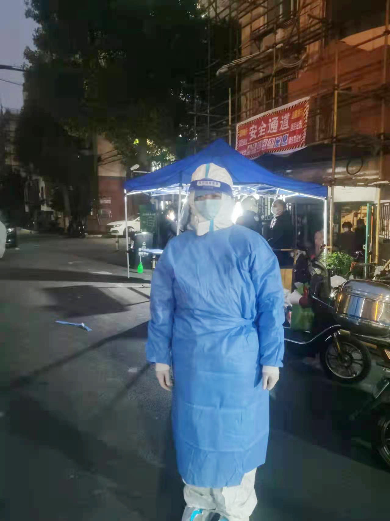 姜凱松是公司駐周浦項目的一名輔警,負責協(xié)助維持核酸檢測現場(chǎng)秩序。他每天要接觸上萬(wàn)名居民,時(shí)時(shí)提醒居民準備好核酸檢測登記碼、戴好口 罩、保持好安全距離。有時(shí)連續一整天都無(wú)法坐下來(lái)休息,工作強度大,風(fēng)險大,然而姜凱松沒(méi)有一絲怨言和害怕,他說(shuō):“當前應以疫情防控大局為重,我是個(gè)普通人,雖然力量有限,但我一定會(huì )竭盡全力做好本職工作,為上海的疫情防控添一份力?!?br /> 曹秋霞是公司駐新場(chǎng)某定點(diǎn)隔離酒店的一名保安員,平時(shí)需要穿上密不透風(fēng)的防護服、戴上護目鏡,為全封閉的隔離酒店提供保障服務(wù),核驗出入隔離酒店人員的身份信息,做好房間、走廊、大廳、廚房、廁所等場(chǎng)所消毒,儲備防疫物資。