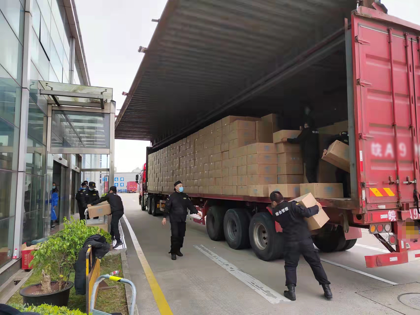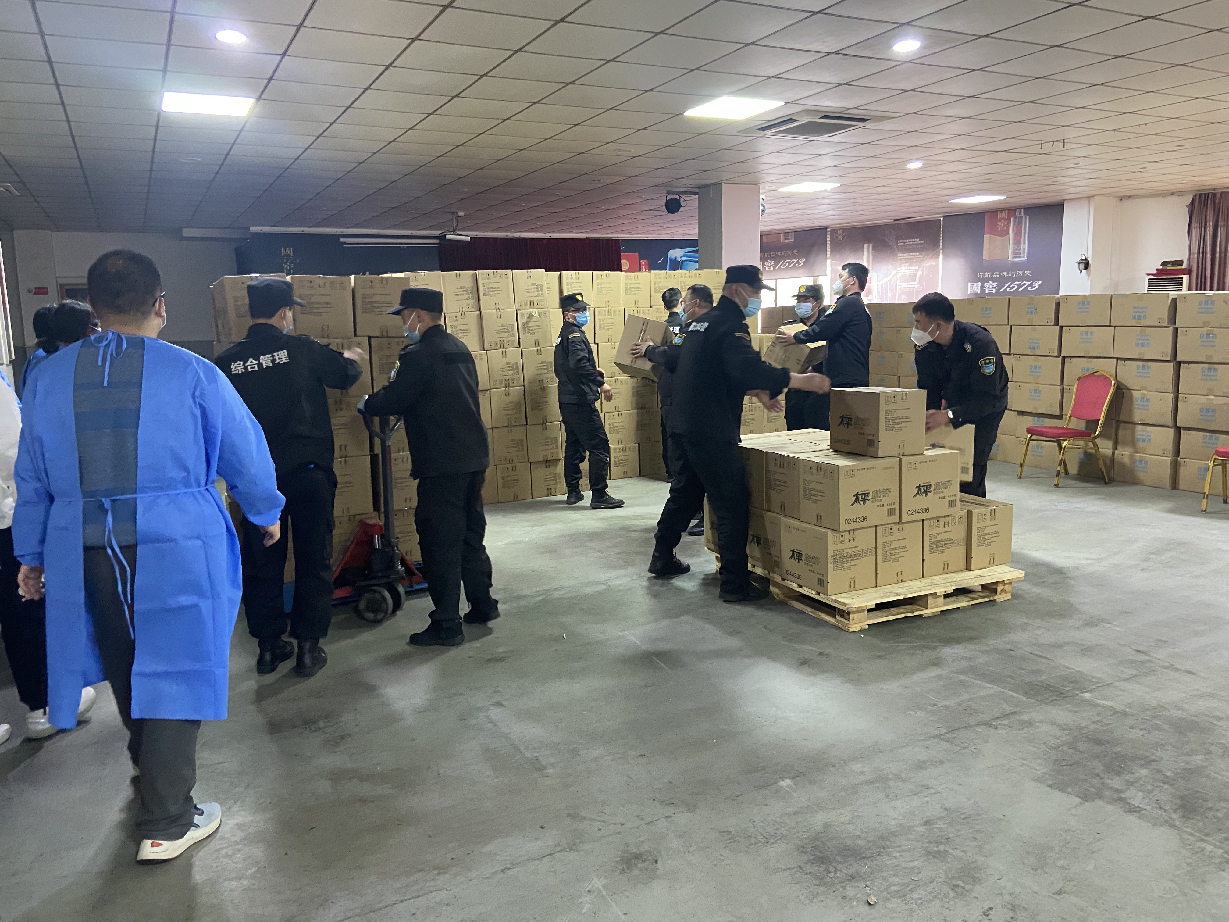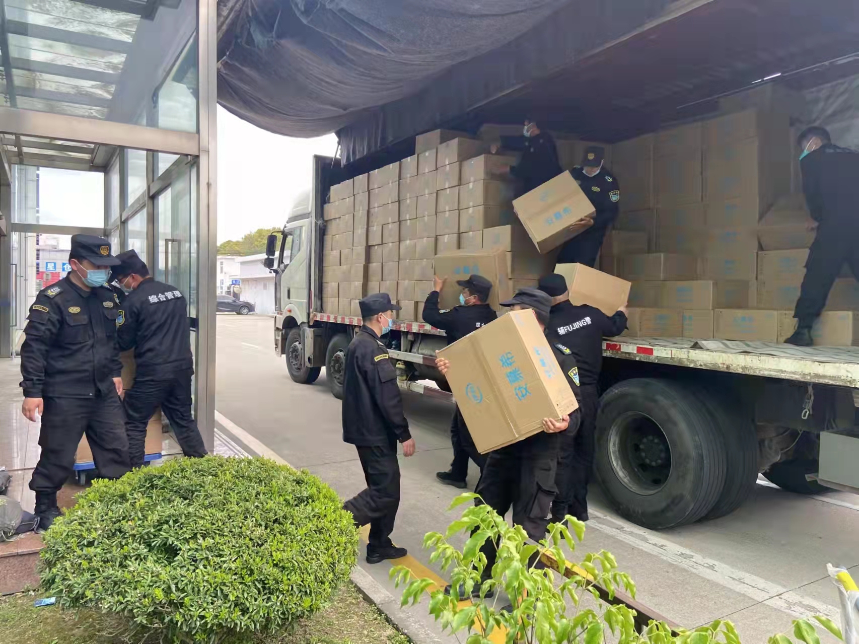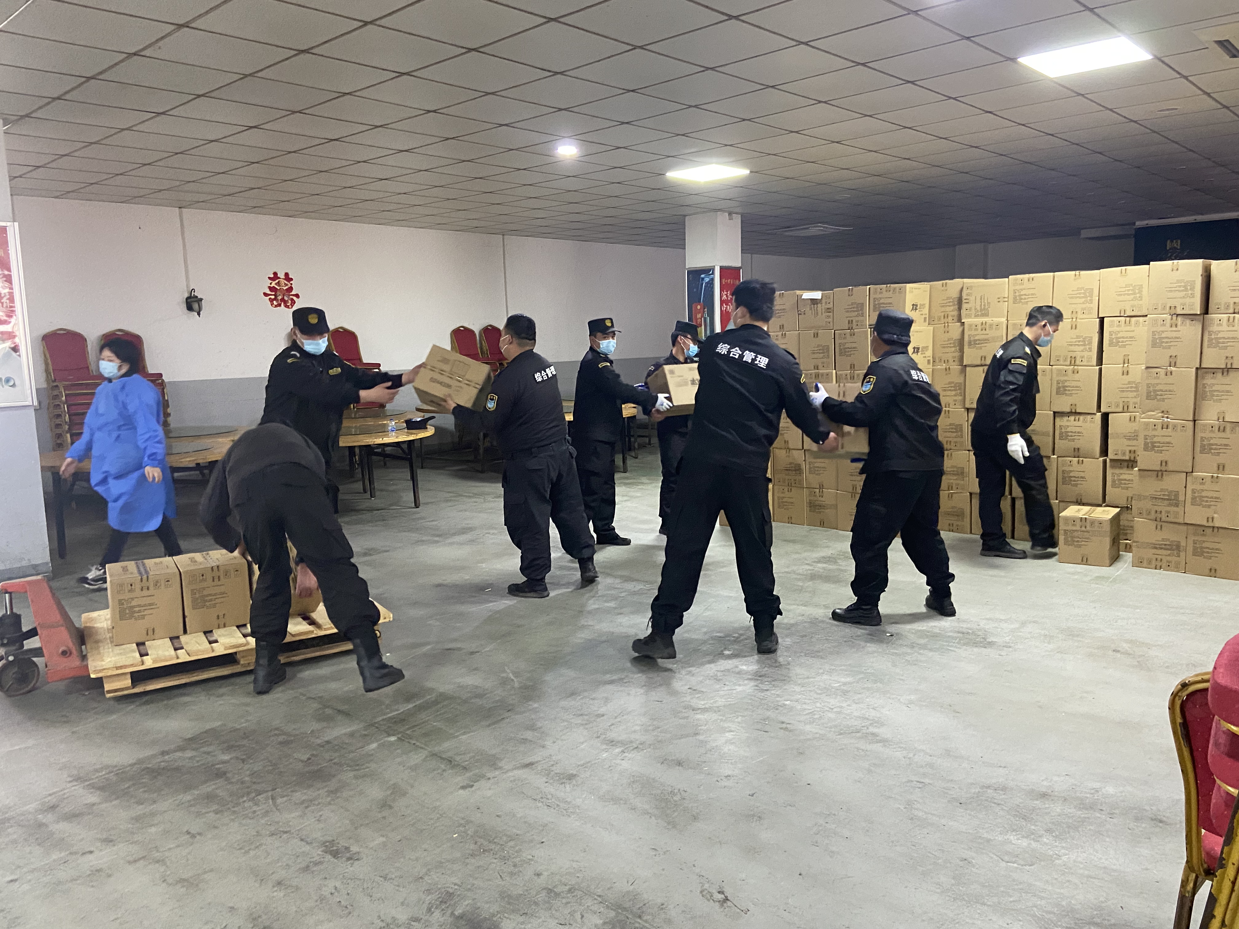 卯時(shí),員工們齊心協(xié)力協(xié)助甲方單位搬運防疫物資。他們的辛苦,傳遞著(zhù)他們的溫度。
