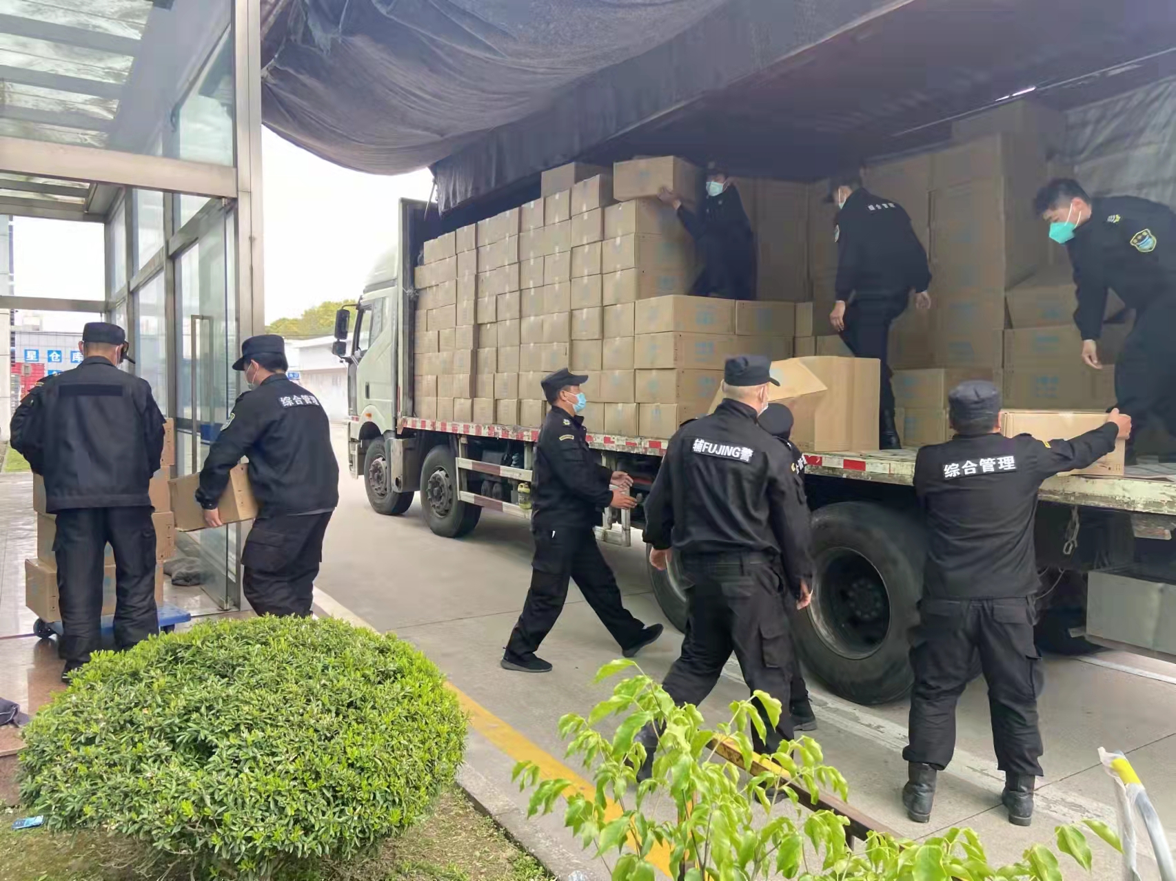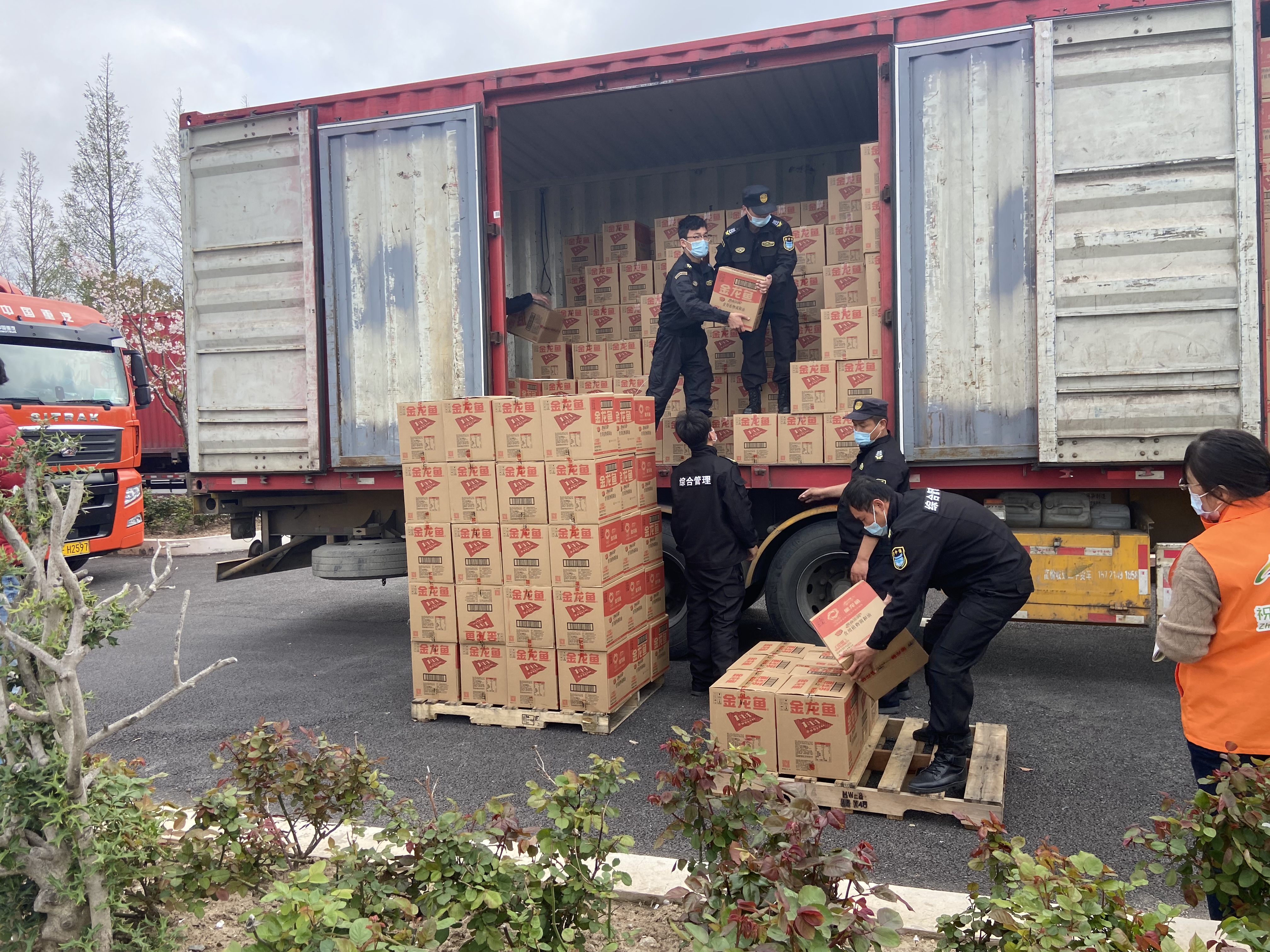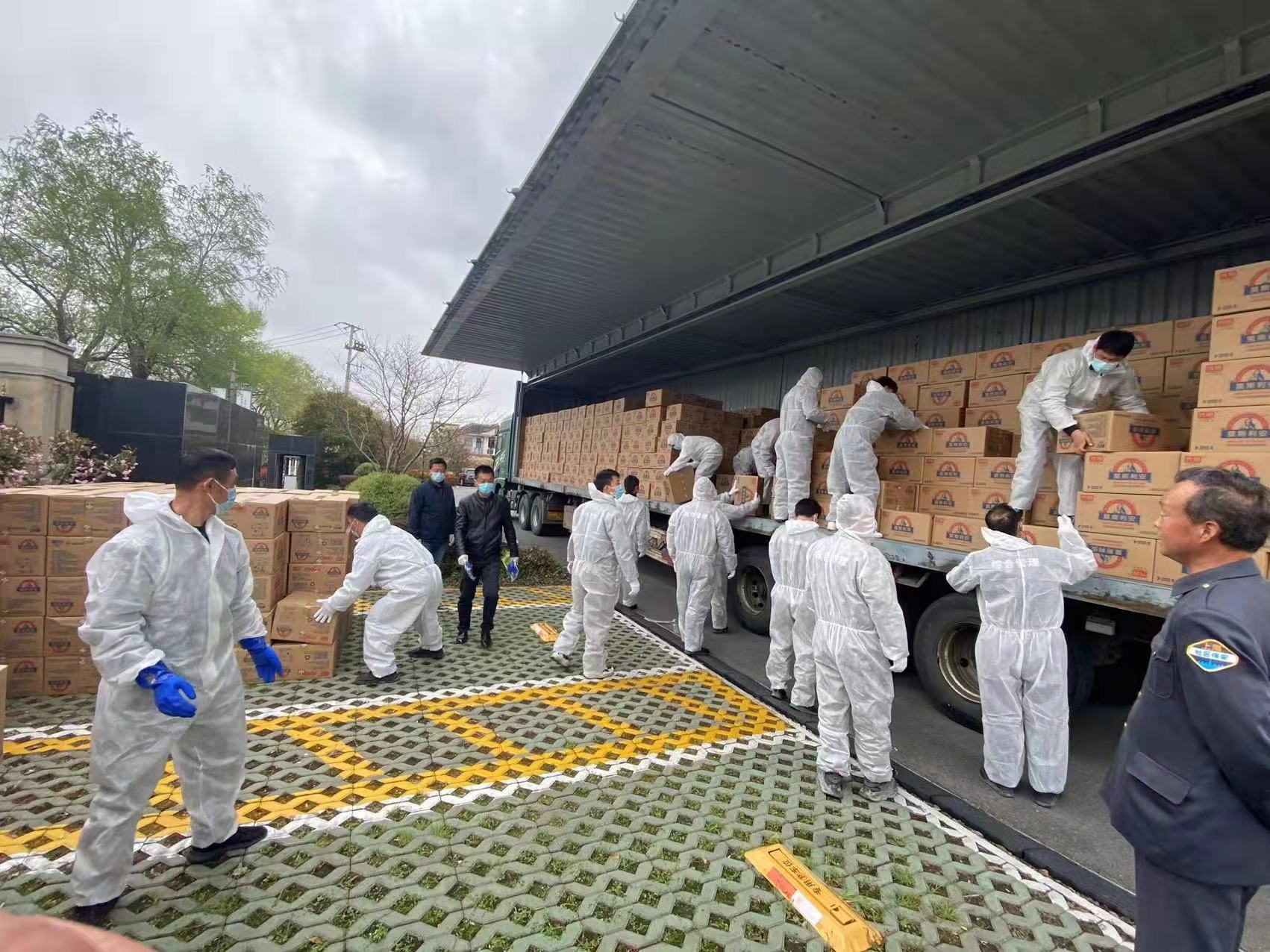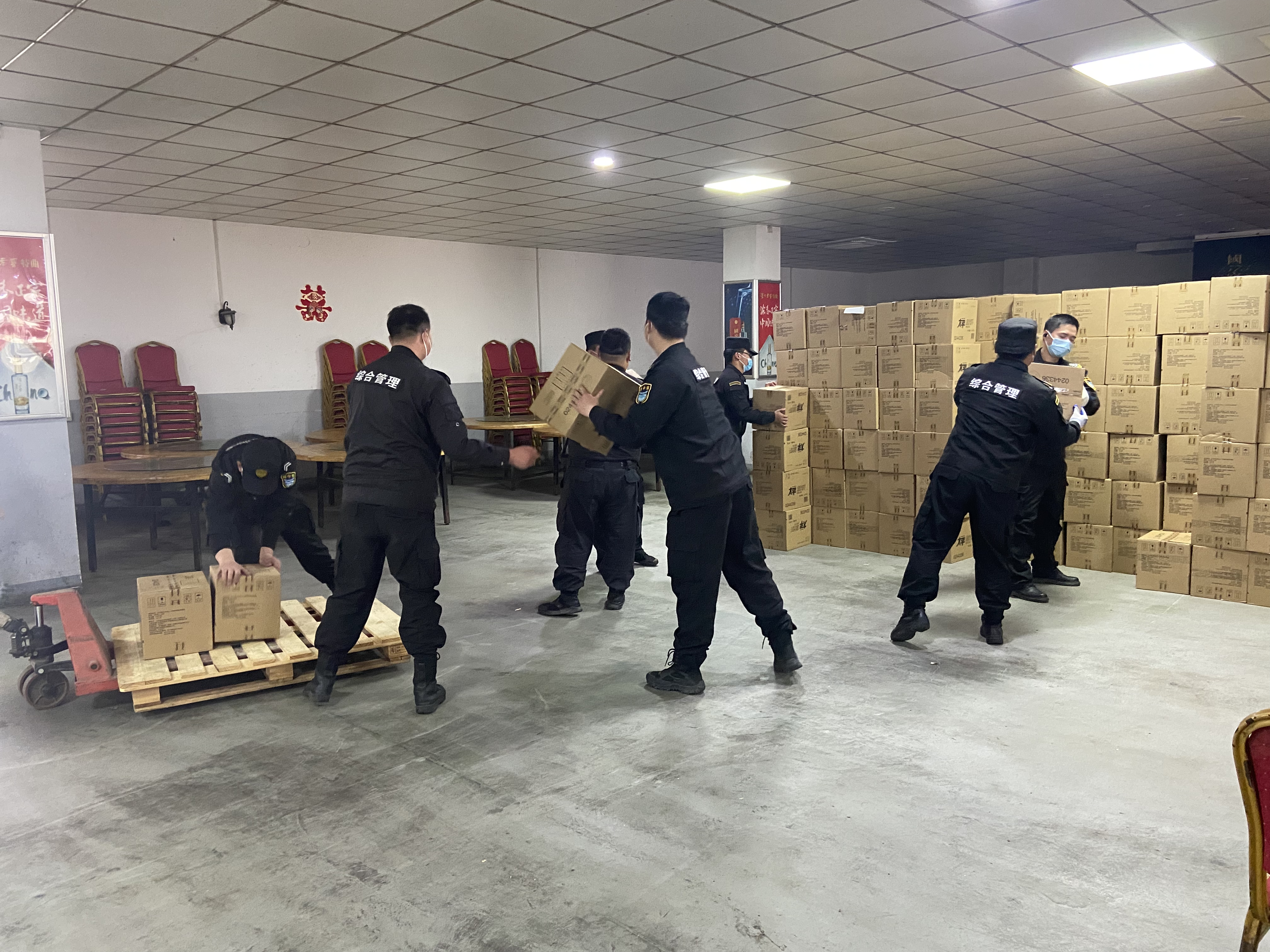 卯時(shí),員工們齊心協(xié)力協(xié)助甲方單位搬運防疫物資。他們的辛苦,傳遞著(zhù)他們的溫度。