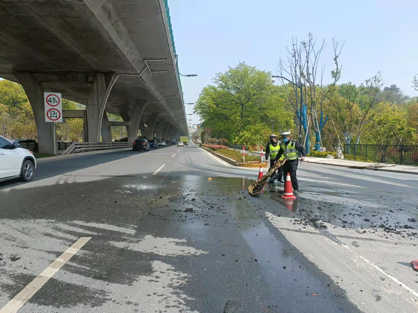 當日12:30,馮奧、孫江永、方宜龍、張自強在中泰街道商貿城巡邏時(shí),看到杭徽高速塌陽(yáng)橋路段有濃濃黑煙冒起,遂駕車(chē)前往查看。