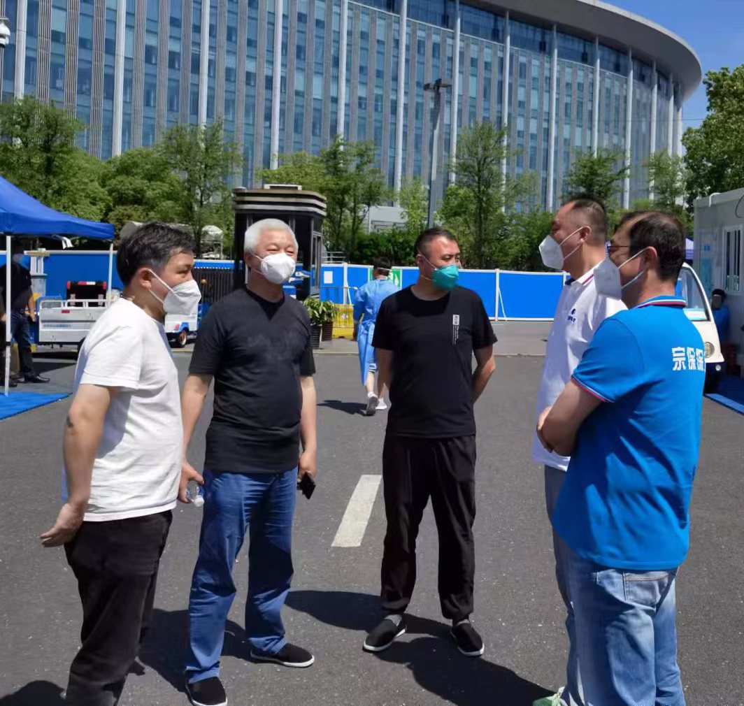 5月31日,上海地產(chǎn)(集團)有限公司領(lǐng)導來(lái)到國家會(huì )展中心方艙醫院看望慰問(wèn)宗保公司員工,宗保公司董事長(cháng)王耀全程陪同。