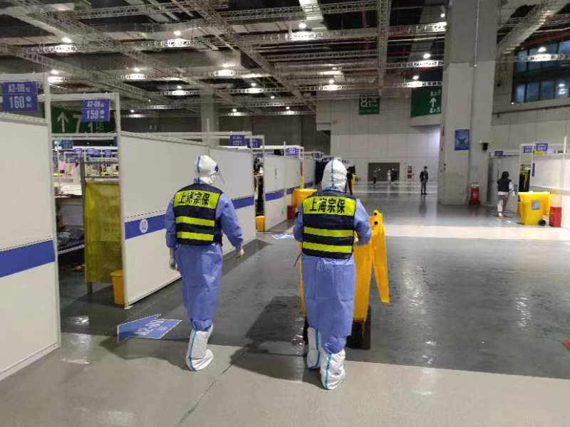 宗保公司員工無(wú)論是身處方艙醫院外圍進(jìn)行秩序維護,還是身處隔離治療區進(jìn)行服務(wù)保障,都能?chē)栏褡袷胤脚撫t院管理規定,落實(shí)方艙醫院防控措施。他們不懼風(fēng)險、勇毅前行,配合做好出艙人員秩序維護、確診人員轉送、乘車(chē)引導、后勤保障、分配物資、清理垃圾、幫扶病患、安全巡查等各項疫情防控工作,全力協(xié)助做好國家會(huì )展中心方艙醫院關(guān)艙后的各項善后收尾工作,用自己的實(shí)際行動(dòng)詮釋了宗保公司員工的奉獻和擔當。