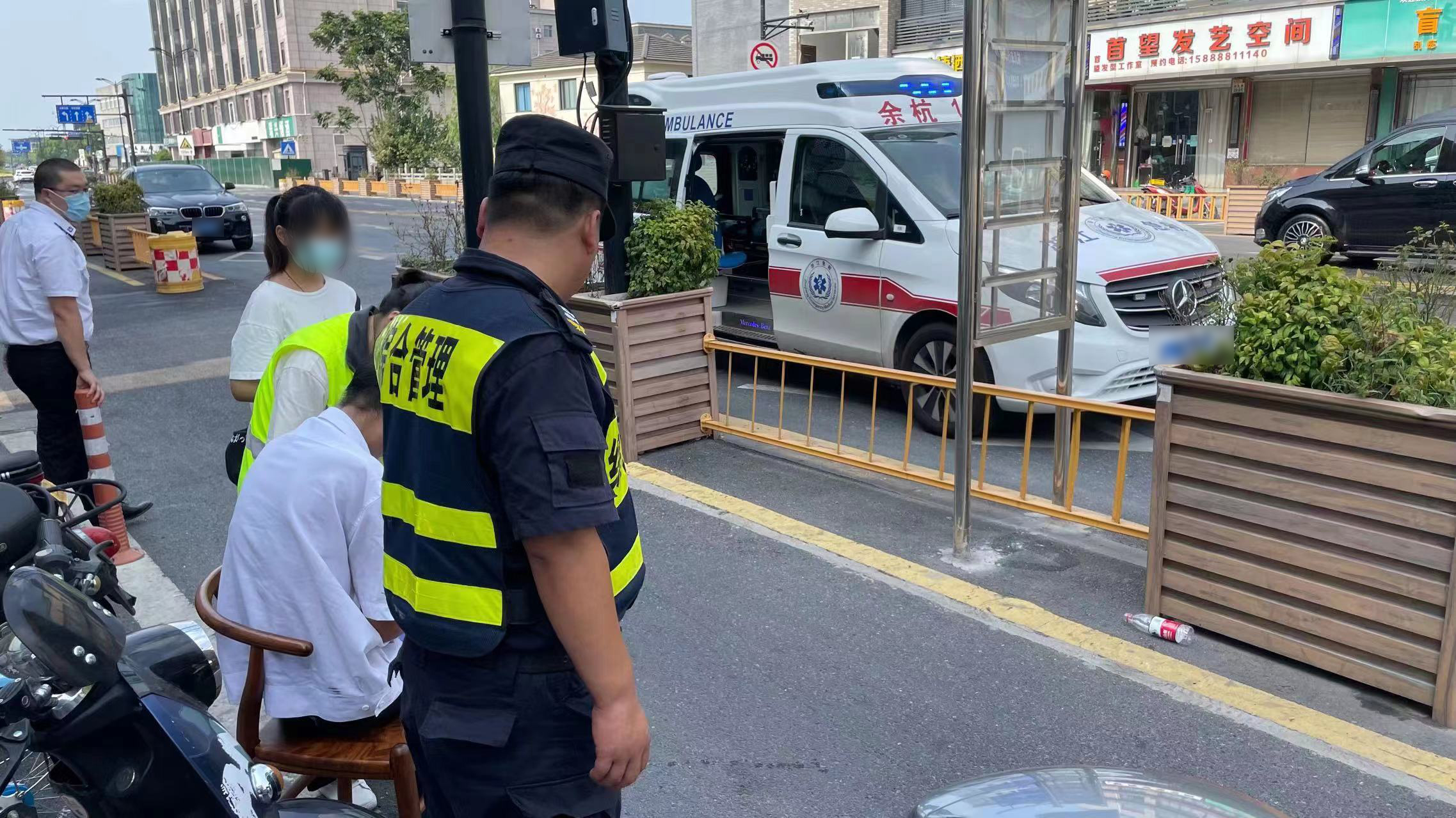 8月25日,浙江民泰駐杭州五常街道城管輔助項目隊員救助暈倒男子。