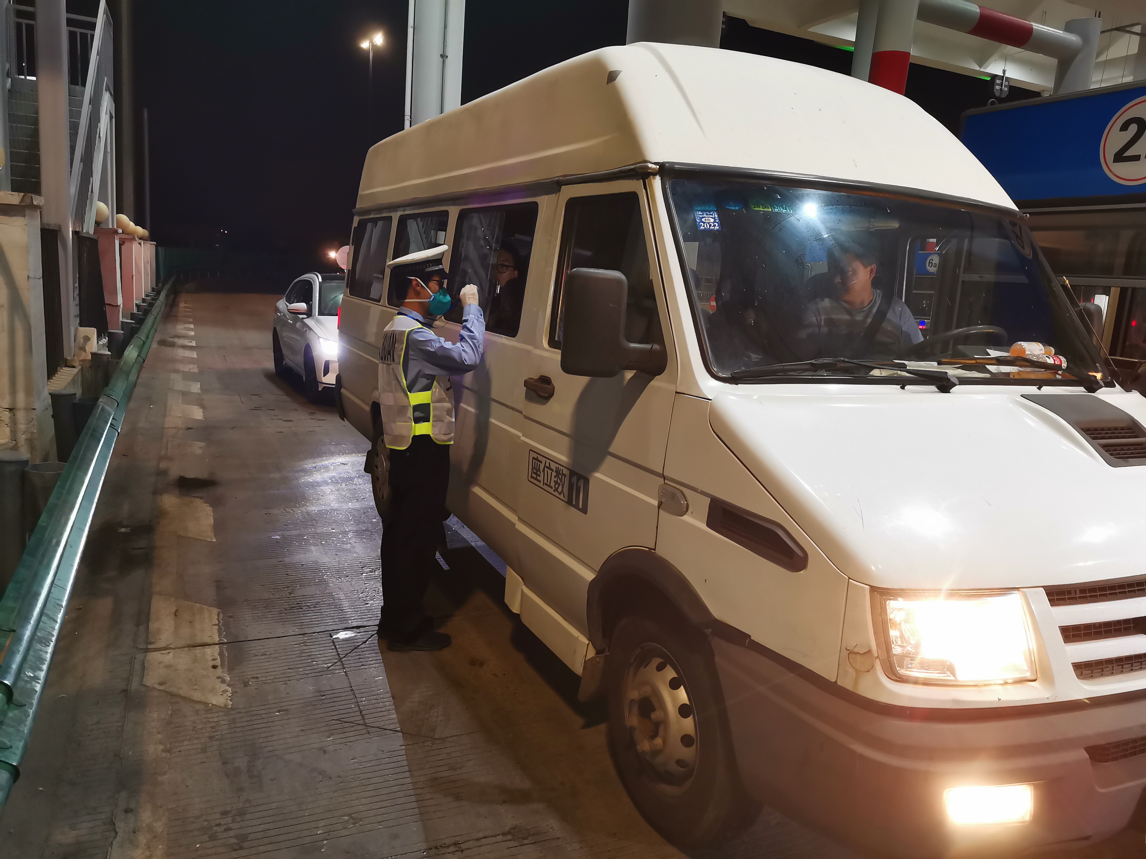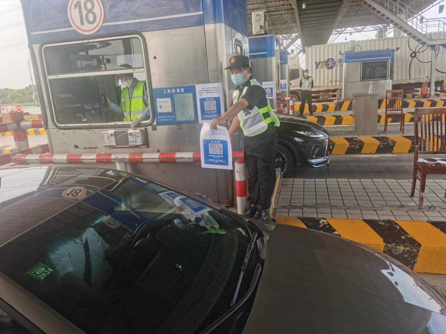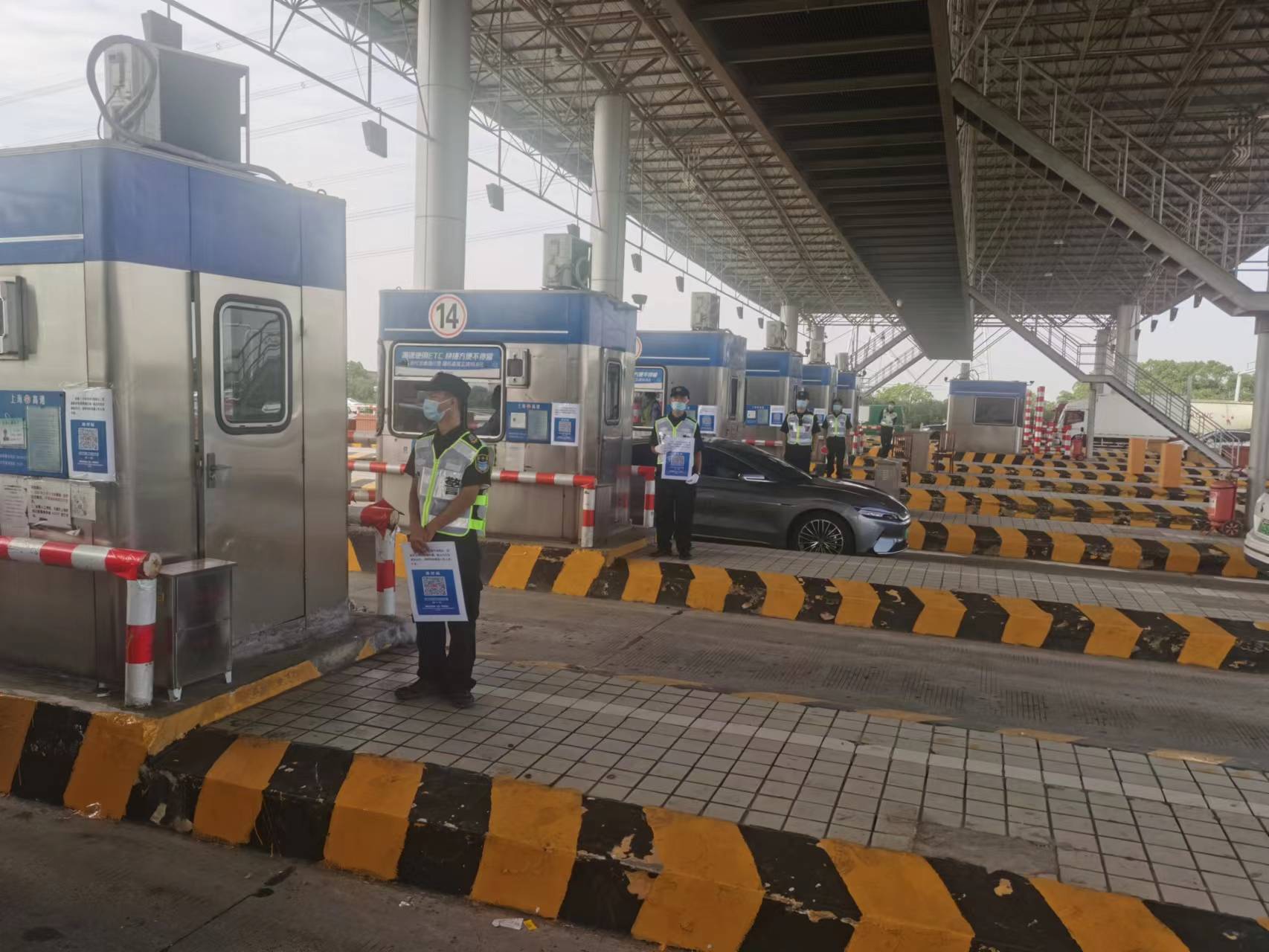 “您好!請掃場(chǎng)所碼通行,請主動(dòng)進(jìn)行核酸檢測!”宗保公司根據有關(guān)疫情防控部門(mén)的部署和安排,進(jìn)駐高速公路收費站,協(xié)助對所有入滬車(chē)輛人員進(jìn)行掃碼和核酸檢測。
