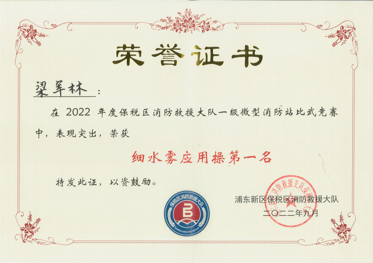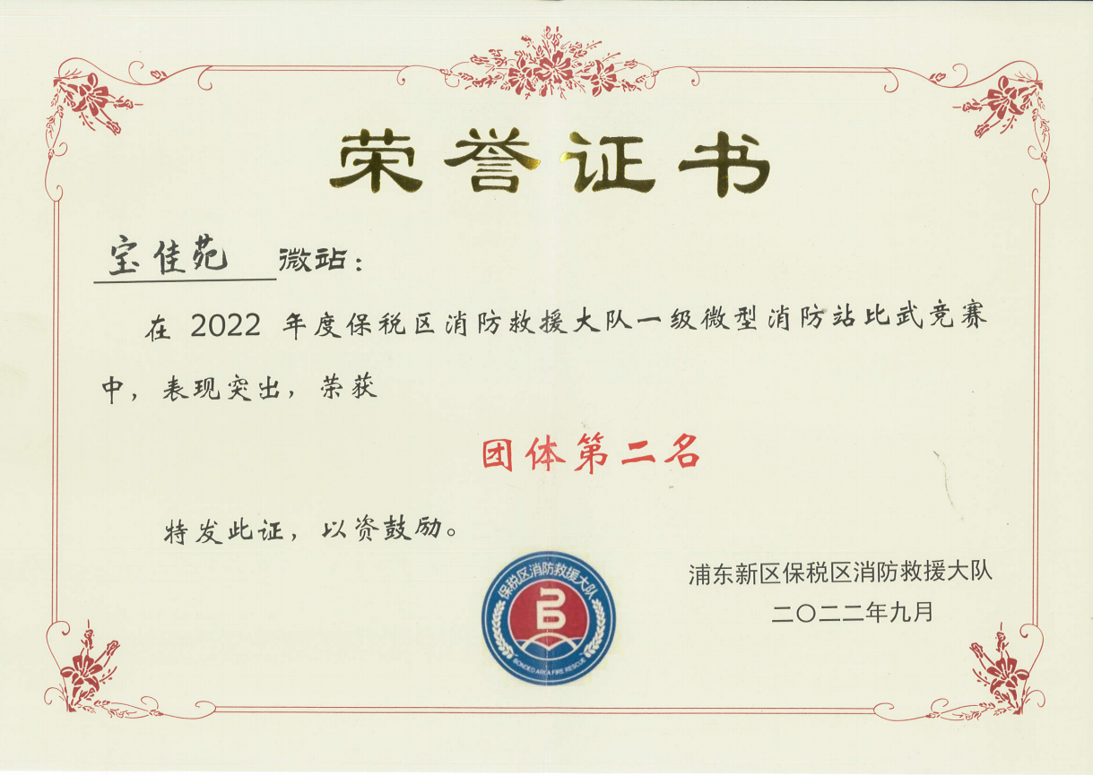 9月28日,宗保公司員工參加2022年度浦東新區保稅區消防救援大隊一級微型消防站比武競賽,經(jīng)過(guò)激烈角逐,公司參賽員工不畏強手、力爭上游,最終在多項比賽活動(dòng)中榮獲佳績(jì),展現了公司員工過(guò)硬的業(yè)務(wù)技能,彰顯了公司員工進(jìn)取的精神風(fēng)采。