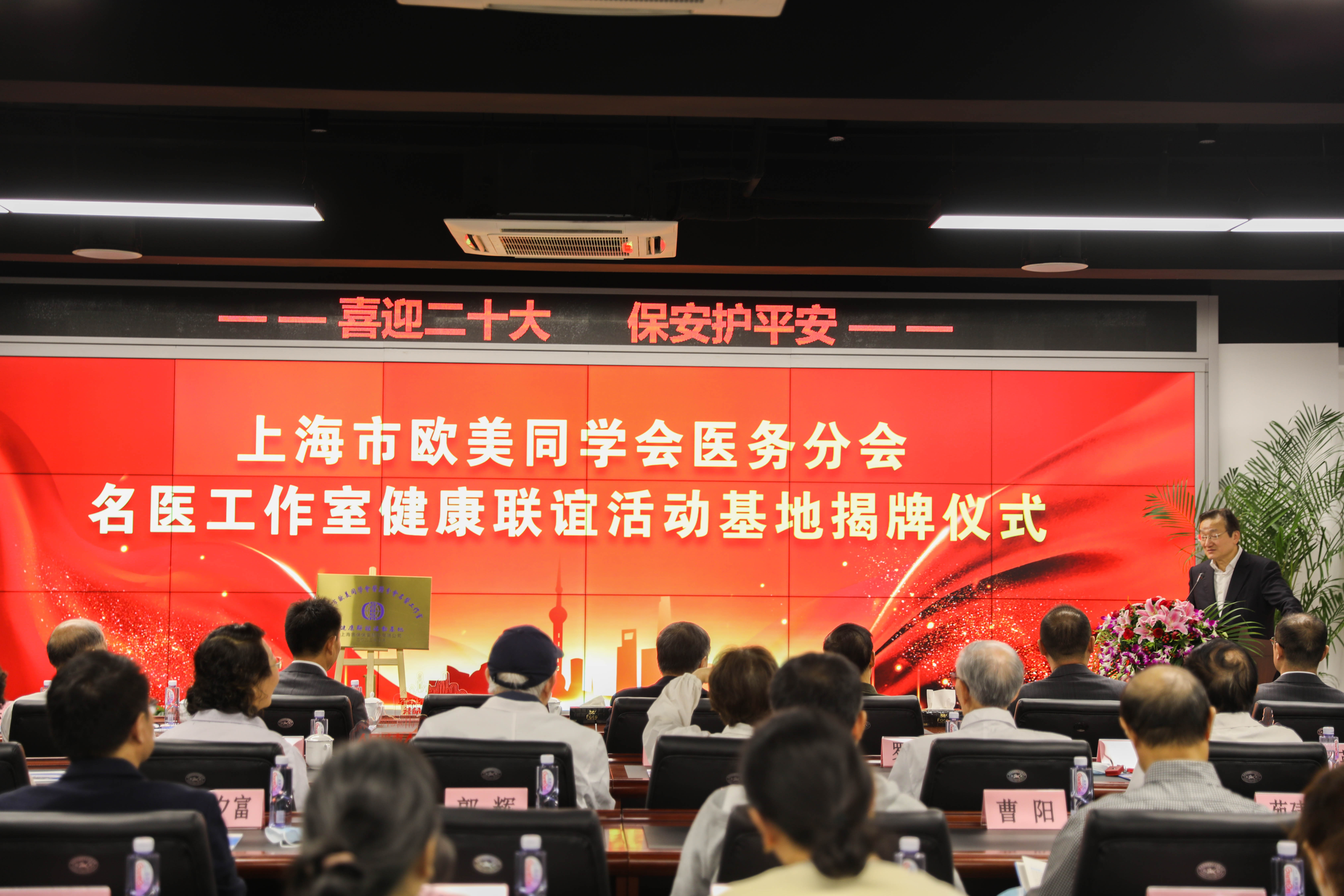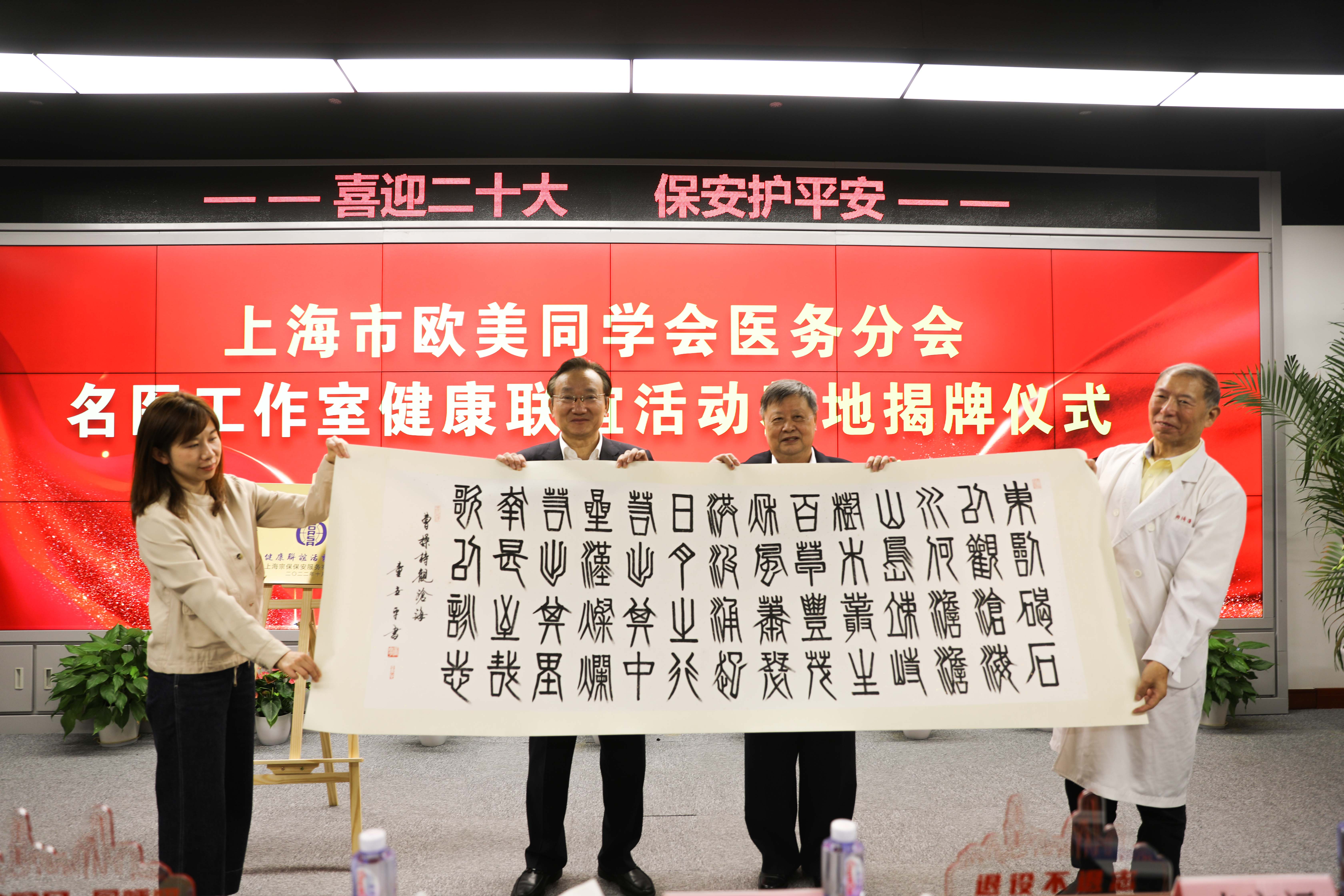 11:00,揭牌儀式正式開(kāi)始,上海市歐美同學(xué)會(huì )醫務(wù)分會(huì )名醫工作室和上海宗保保安服務(wù)有限公司簽署了戰略合作協(xié)議。徐建光會(huì )長(cháng)、原同濟大學(xué)附屬同濟醫院副院長(cháng)、醫科所所長(cháng)王永武教授和宗保公司創(chuàng )始人馮中保、董事長(cháng)王耀共同為“上海市歐美同學(xué)會(huì )醫務(wù)分會(huì )健康聯(lián)誼活動(dòng)基地”揭牌。