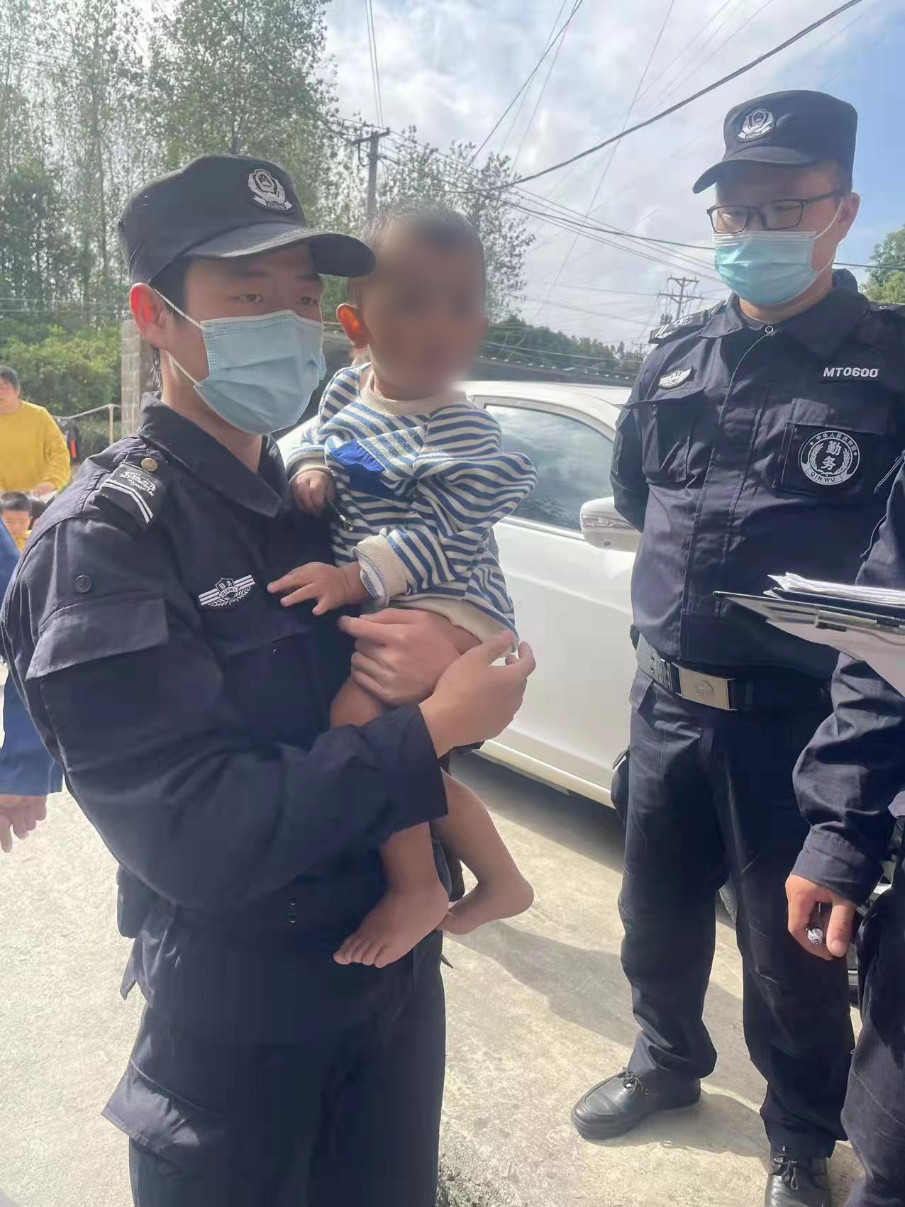 10月31日,浙江民泰公司駐杭州市余杭區良渚新城派出所輔助項目員工幫助走散男童找到家人。