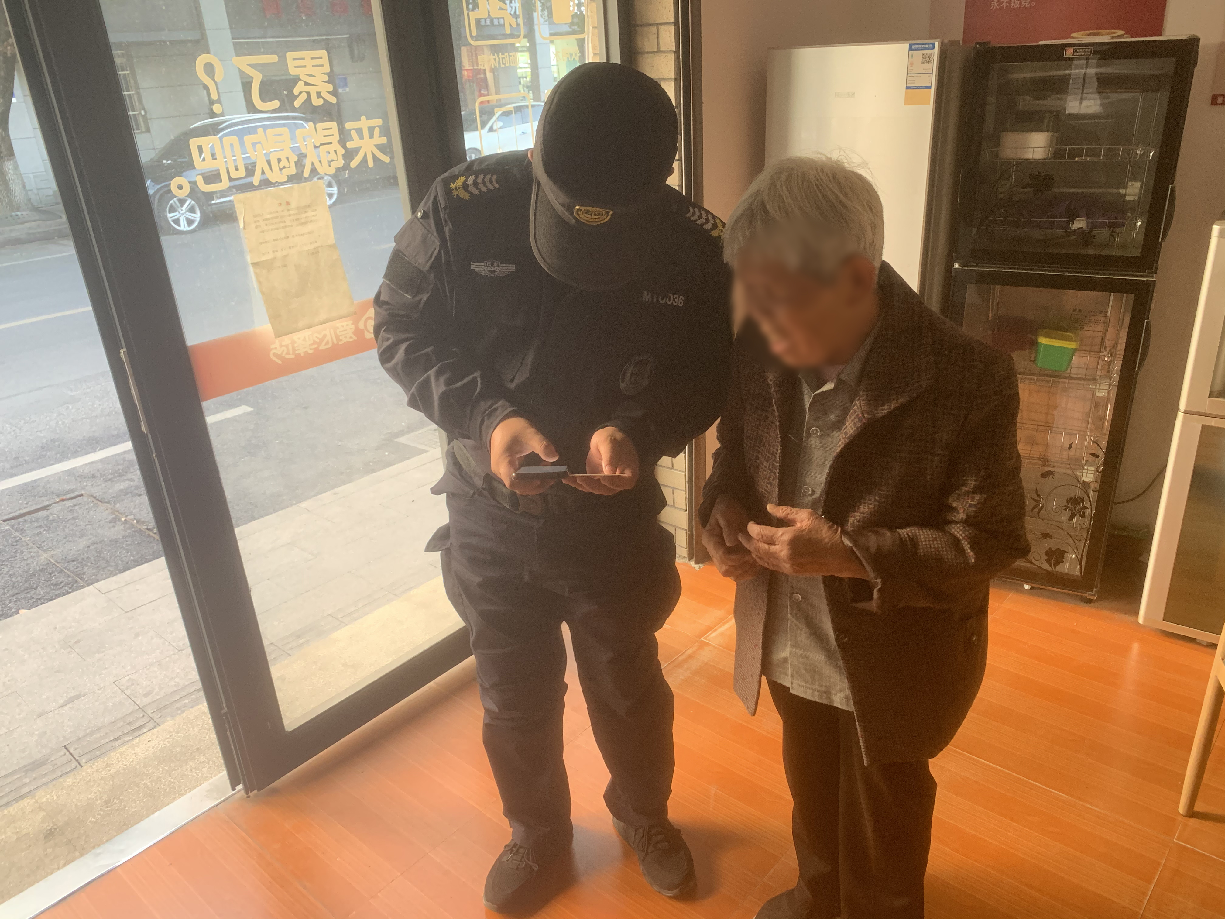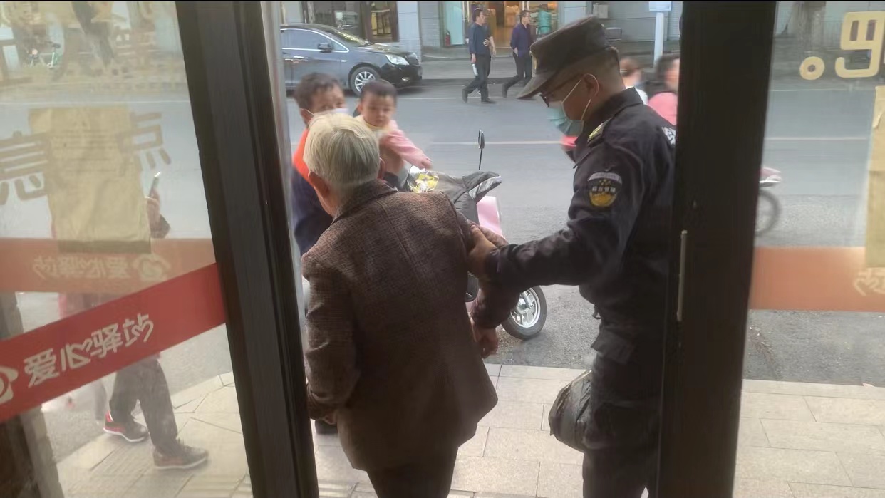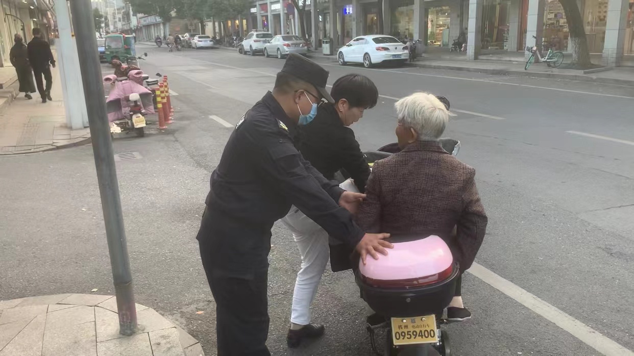 隨后,黃華拎著(zhù)老人的東西,攙扶著(zhù)老人來(lái)到城管驛站內休息。16:50左右,老人女兒趕到約定地點(diǎn)。黃華攙扶老人坐上電瓶車(chē),看著(zhù)父女倆安全地離開(kāi)后,才返回工作崗位繼續值勤。