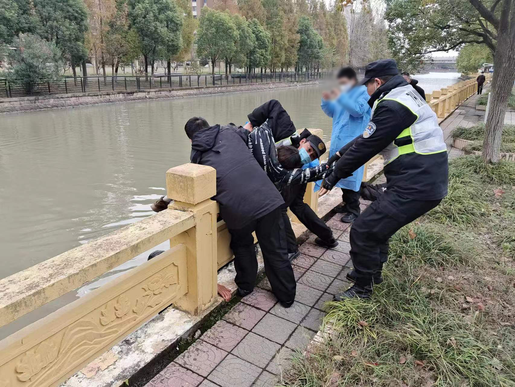 當日13:10,公司員工朱路路在值勤時(shí),看見(jiàn)橫沔江路56號對面有一女子跳河輕生,便邊向河邊跑邊用對講機呼叫同事趕緊過(guò)來(lái)幫忙。