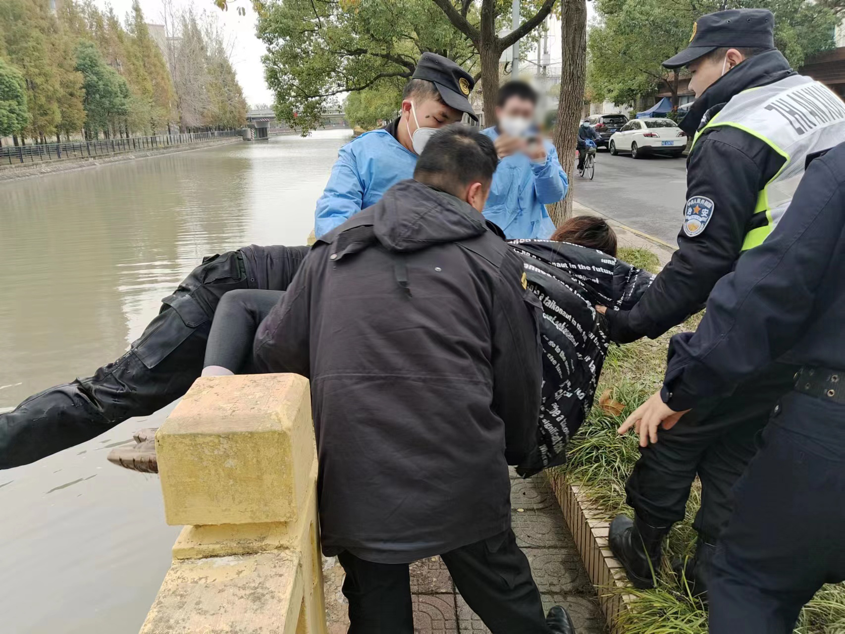 冬日的河水冰冷襲人,剛從河里爬上來(lái)的朱路路,渾身濕透凍得瑟瑟發(fā)抖,已經(jīng)累得精疲力盡。幾名員工向趕到現場(chǎng)的民警說(shuō)明情況后,隨即裹帶著(zhù)朱路路離開(kāi),該女子則由民警進(jìn)行后續處理。