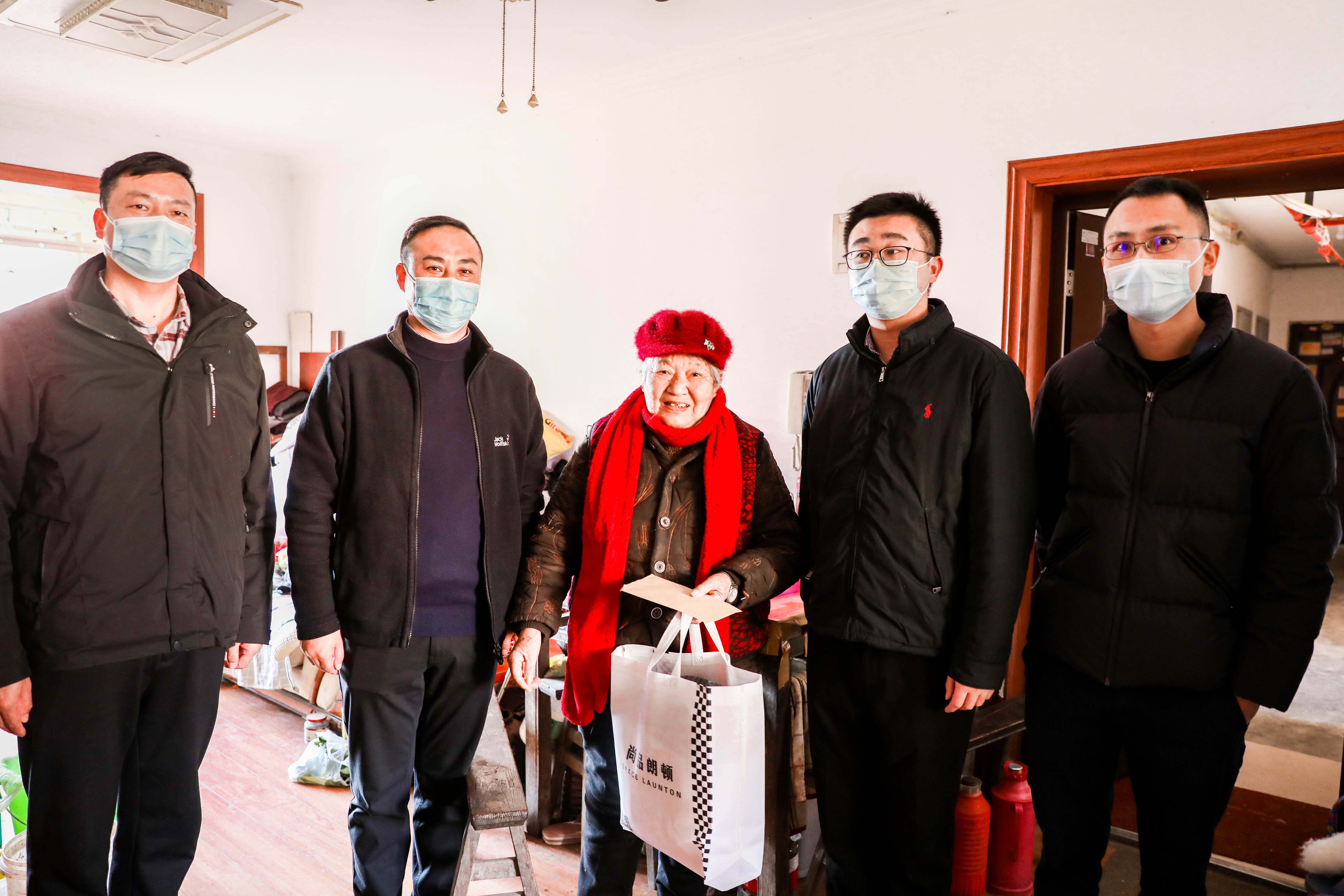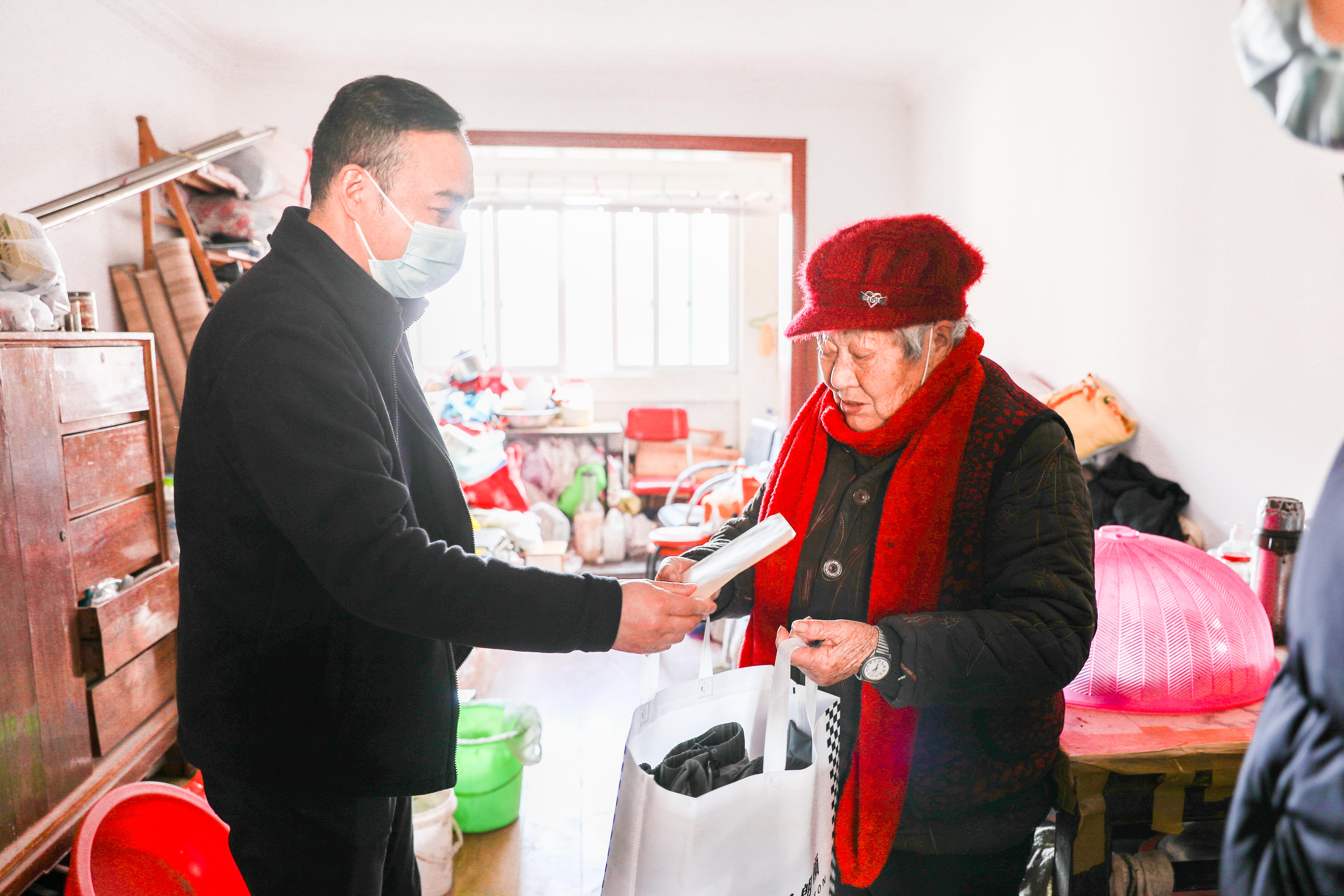 隨后,公司周浦區域經(jīng)理李建國、副經(jīng)理李杰在社區工作人員的帶領(lǐng)下,代表公司登門(mén)看望了相關(guān)困難人員,了解他們的生活,關(guān)切他們的身體,為他們送去公司認領(lǐng)的羊毛被、羽絨服,送上公司特備的慰問(wèn)金,并衷心祝福他們生活愉快、皆得所愿!