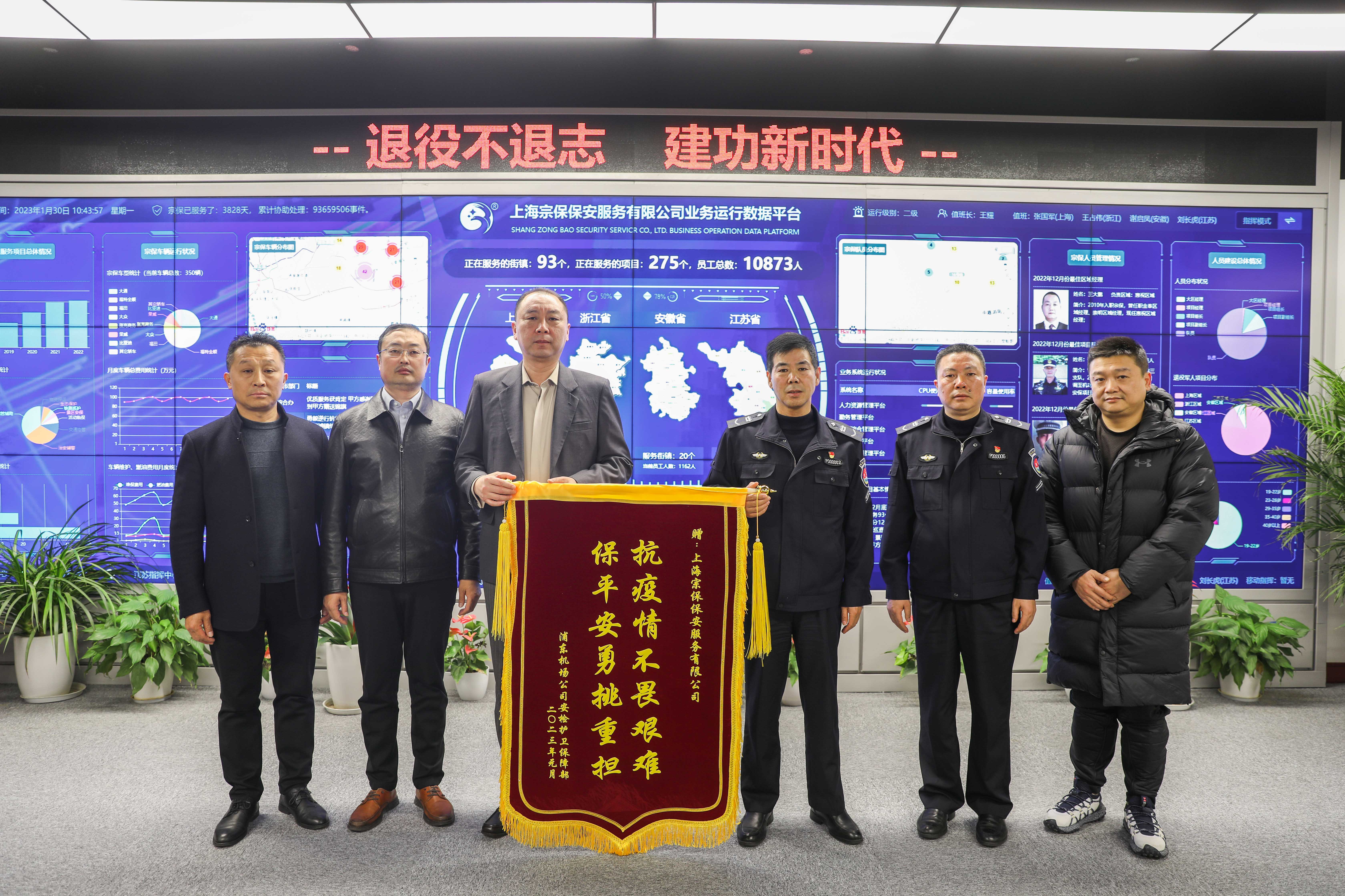 1月30日,上海國際機場(chǎng)股份有限公司浦東國際機場(chǎng)安檢護衛保障部黨委書(shū)記鮑飛榮、紀委書(shū)記陳長(cháng)波一行將繡有“抗疫情不畏艱難 保平安勇挑重擔”的錦旗和感謝信送到宗保公司,感謝公司對浦東機場(chǎng)疫情防控工作的大力支持。