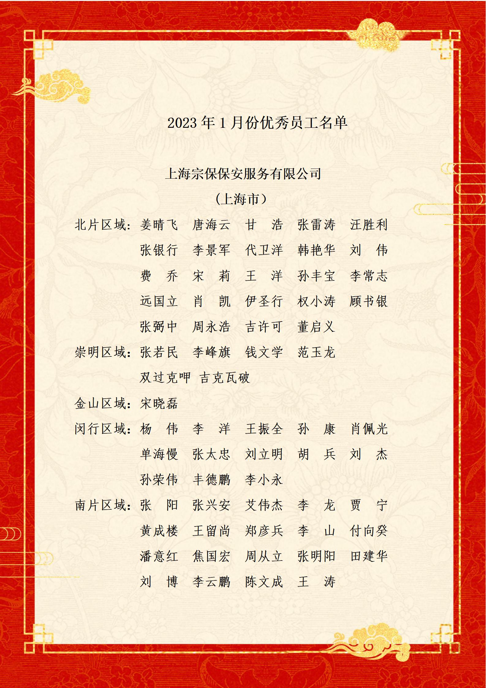 1月份,公司廣大員工根據甲方的任務(wù)要求,按照公司的安排部署,舍小家顧大家,放棄與家人春節團聚,不怕濕寒、連續奮戰,全力輔助開(kāi)展城市管理綜合行政執法,竭力配合做好治安巡邏聯(lián)防、物業(yè)保障服務(wù)、生態(tài)環(huán)境保護、高鐵線(xiàn)路巡防等工作,協(xié)助完成了2023年春節期間安全保障任務(wù)。期間,涌現出了一批盡心履責、崗位建功、拾金不昧、熱心助人的優(yōu)秀員工和先進(jìn)典型。